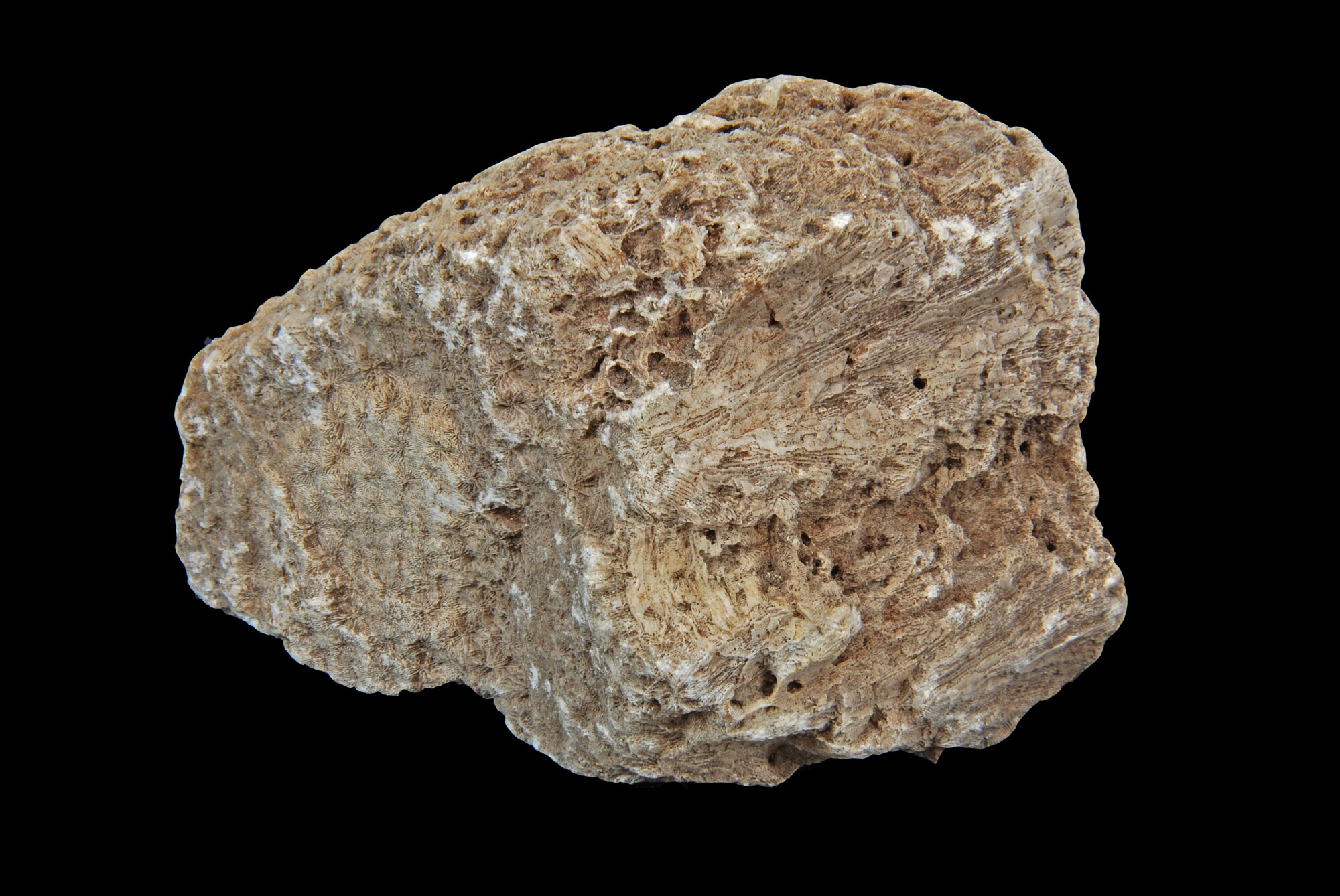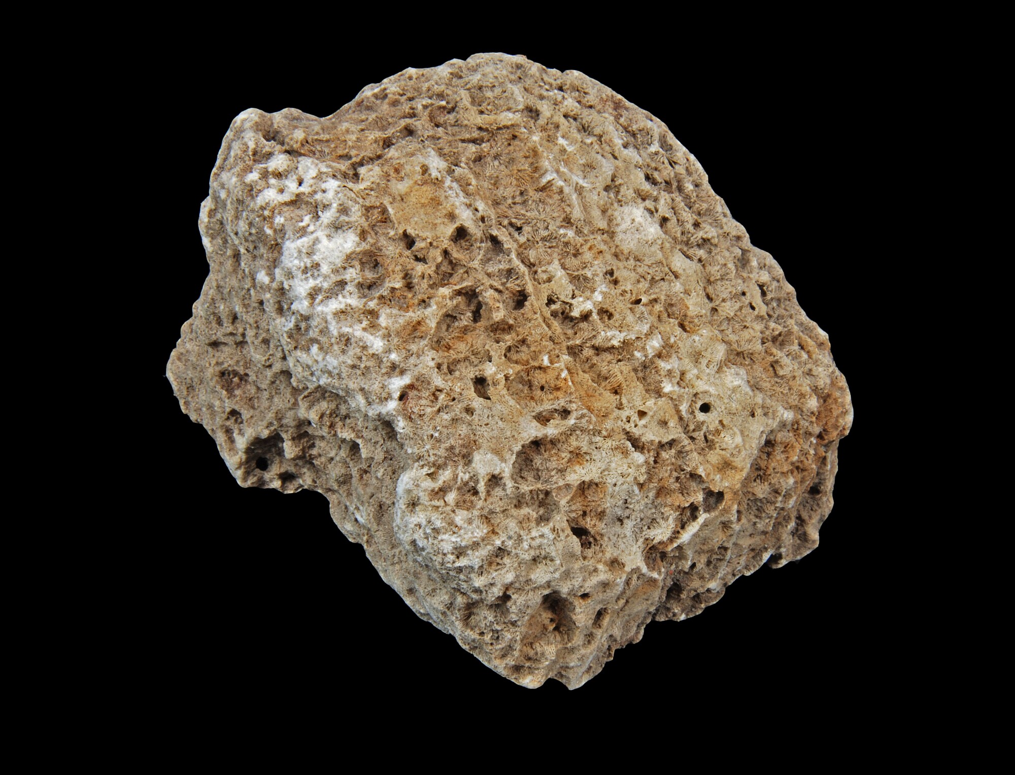 Koraal; kalkskelet van steenkoraal (indet.); brokstuk; vondstomstandigheden: afkomstig uit schelpengalerij