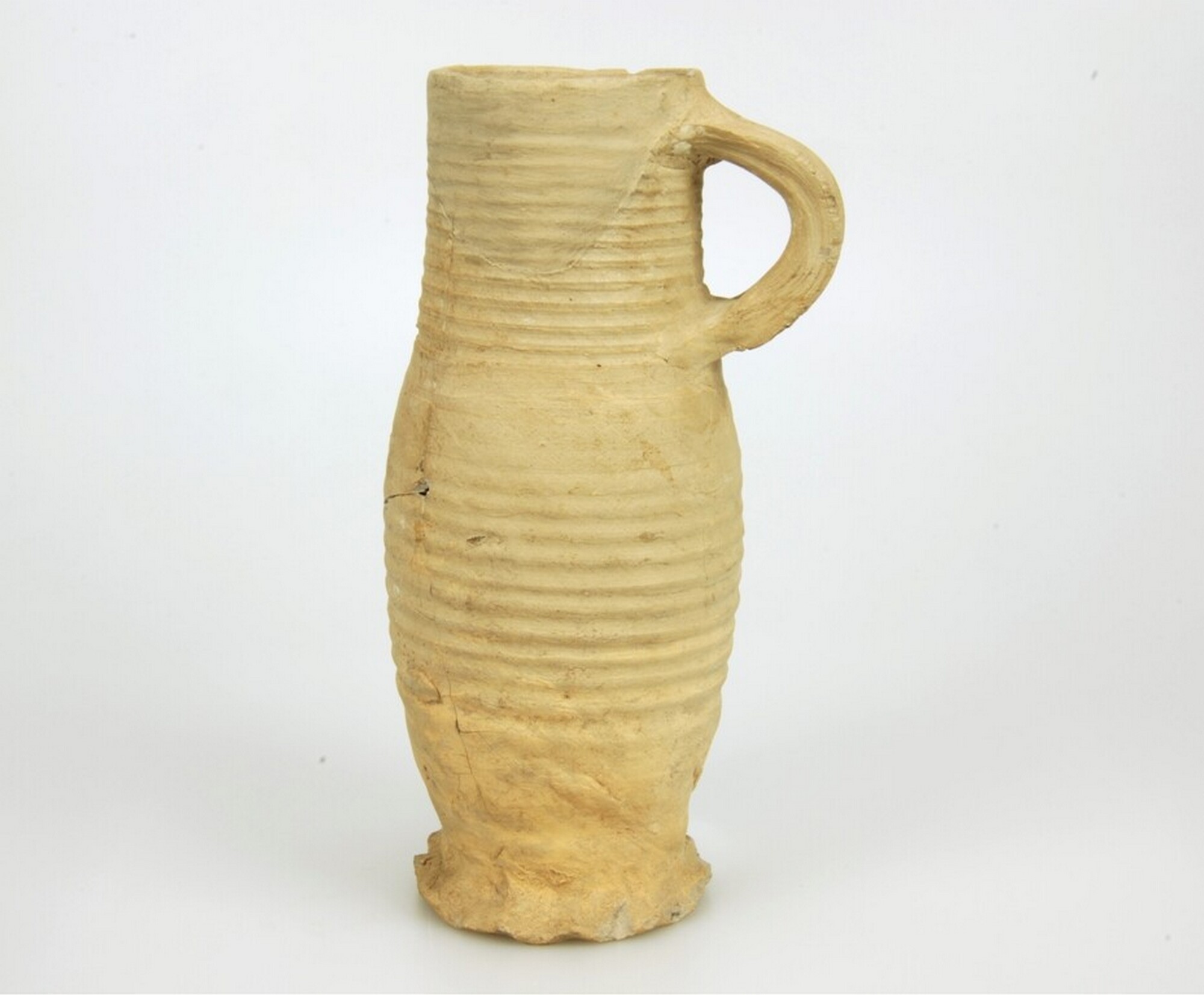 Kan; s1-kan-8; steengoed; standring geknepen; één lintoor; draairingen; herkomst: Siegburg, Rijnland