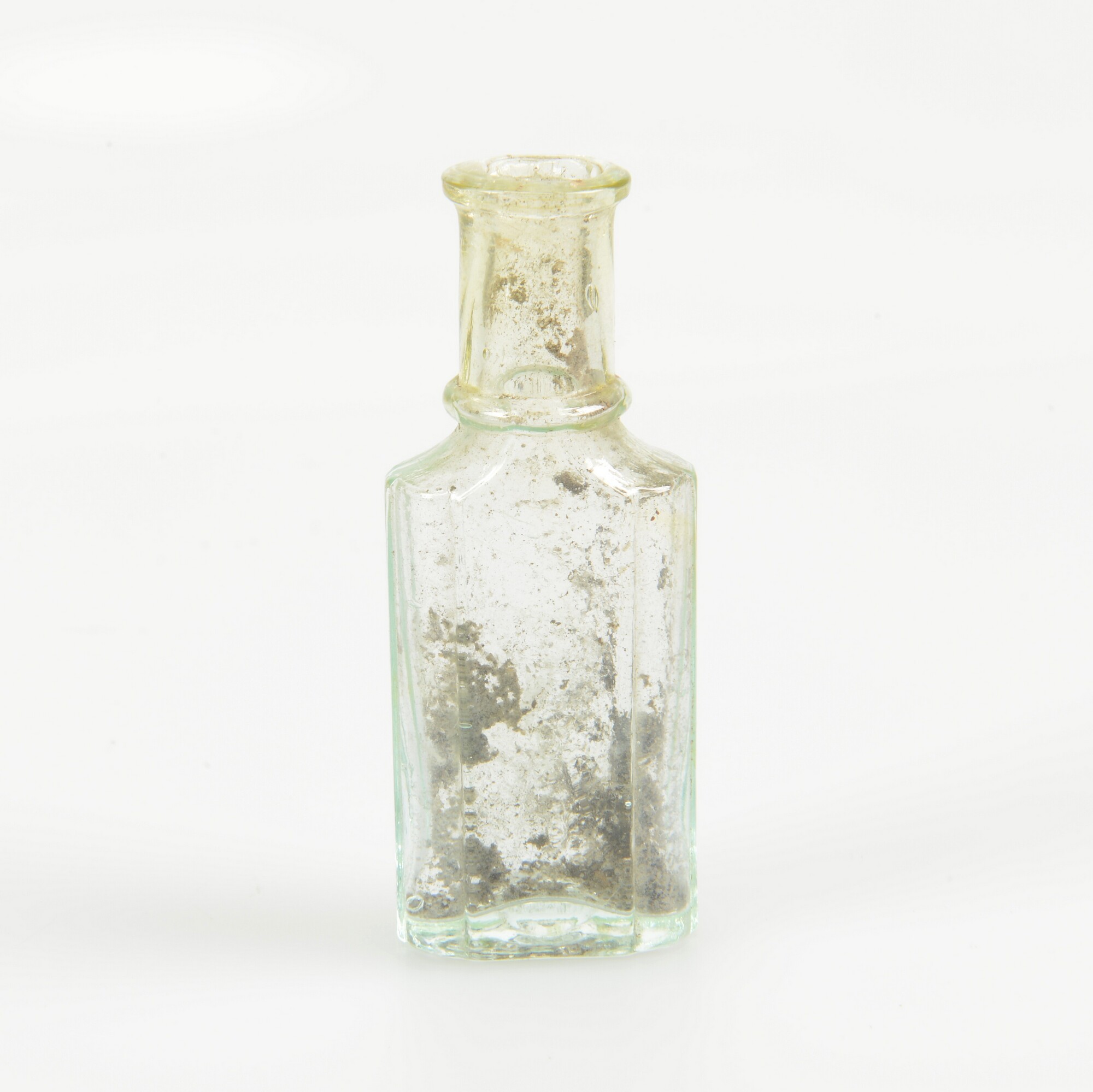 Fles; gl-fle; glas; kleurloos; contactvorm; indoopvont; herkomst: Nederland?