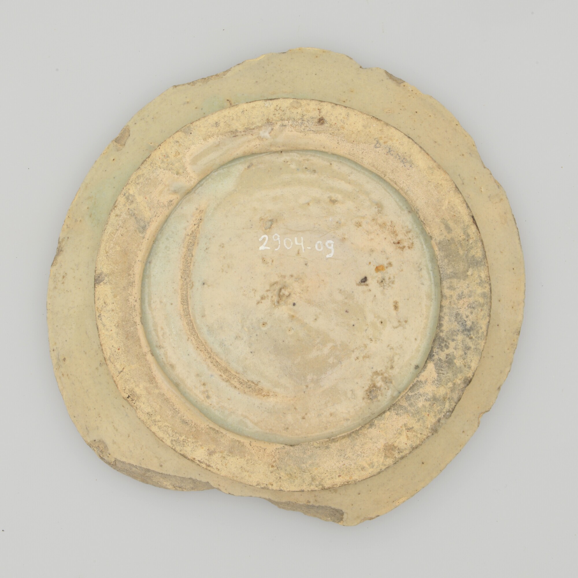 Bord; m-bor-0; decor: man met pijp in blauw, geel en paars; sponswerk; fragment; Friesland of Delft