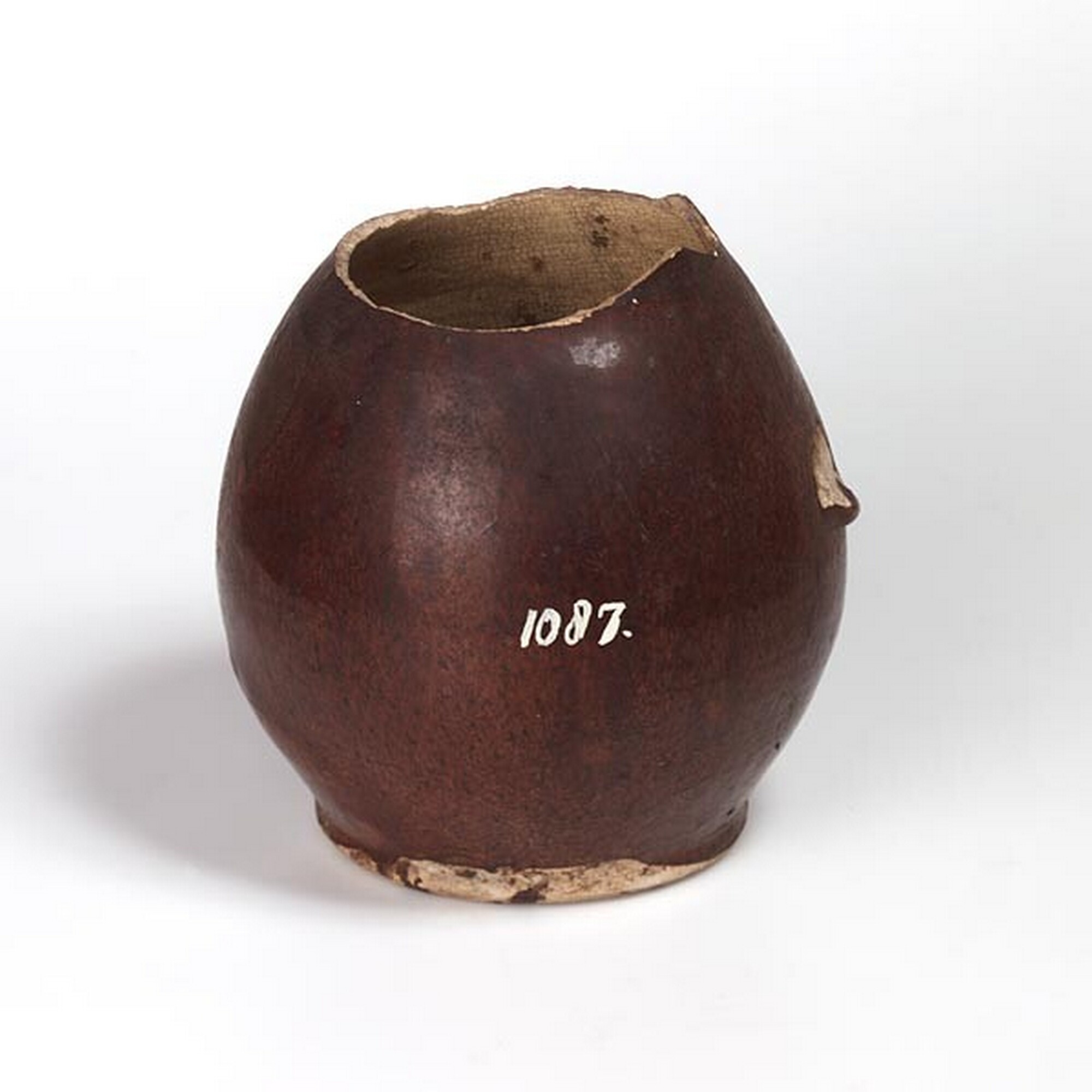 (Melk)kan; w-kan-0; witbakkend aardewerk; uitwendig glazuur met mangaanoxide; fragment; Nederland