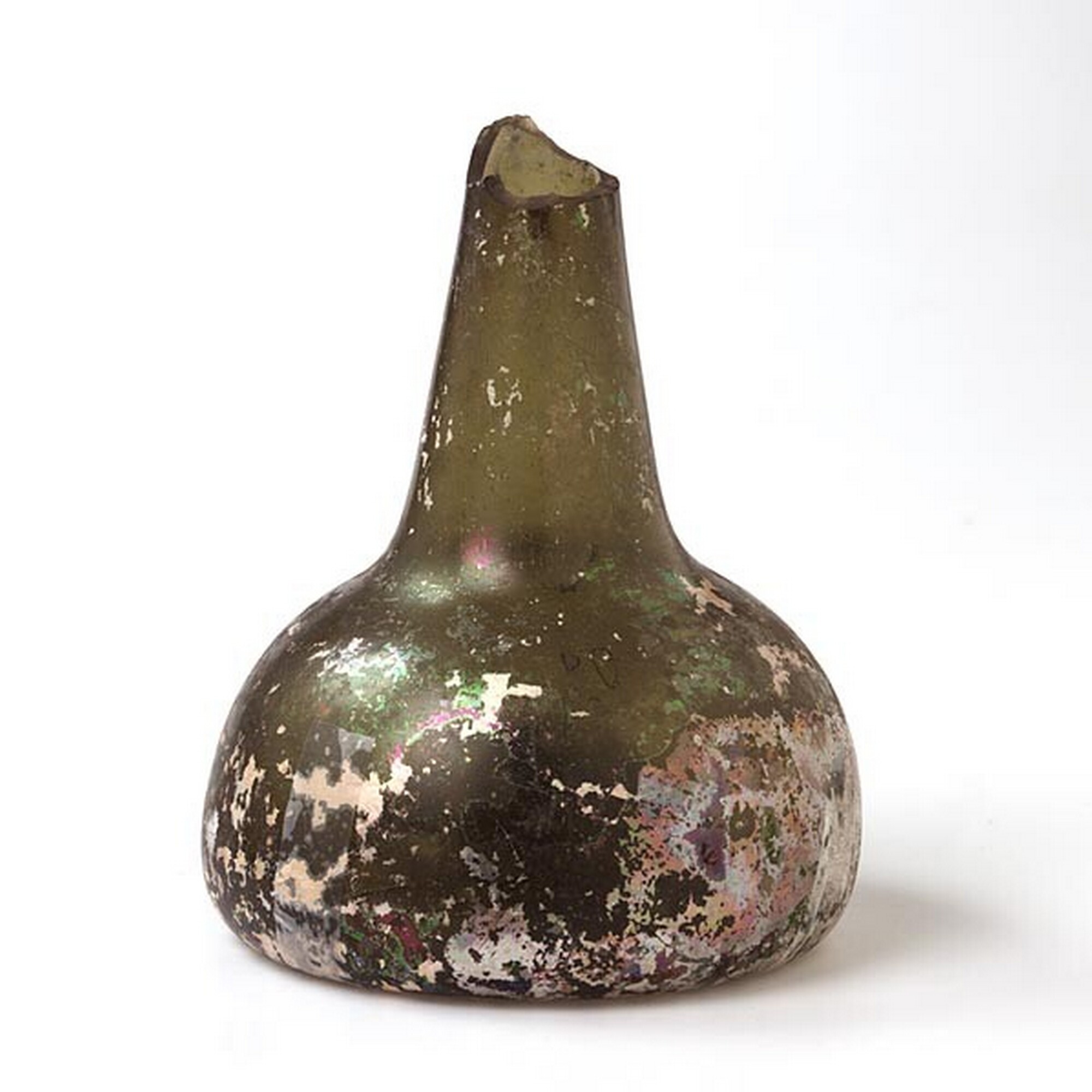 Wijnfles:hoge hals, opgebolde bodem