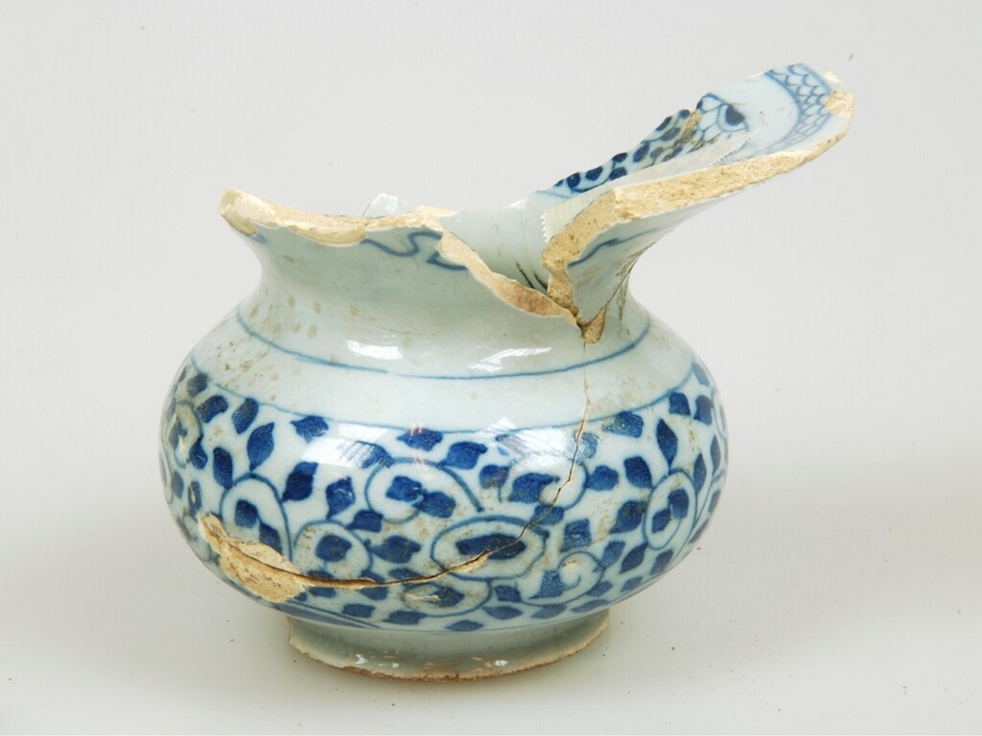 Kwispedoor; f-kwi-2; faience; blauw op wit beschilderd, floraal motief; Delft