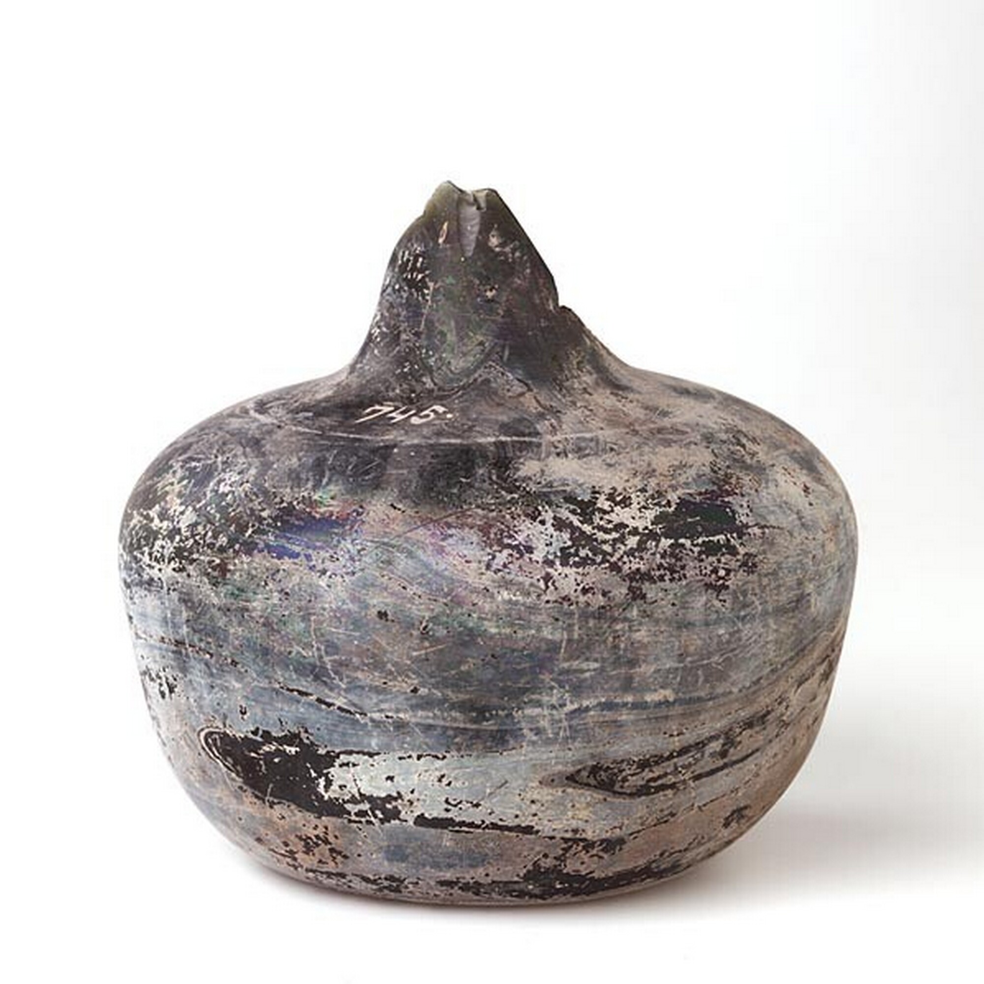 Wijnfles:hoge hals, opgebolde bodem