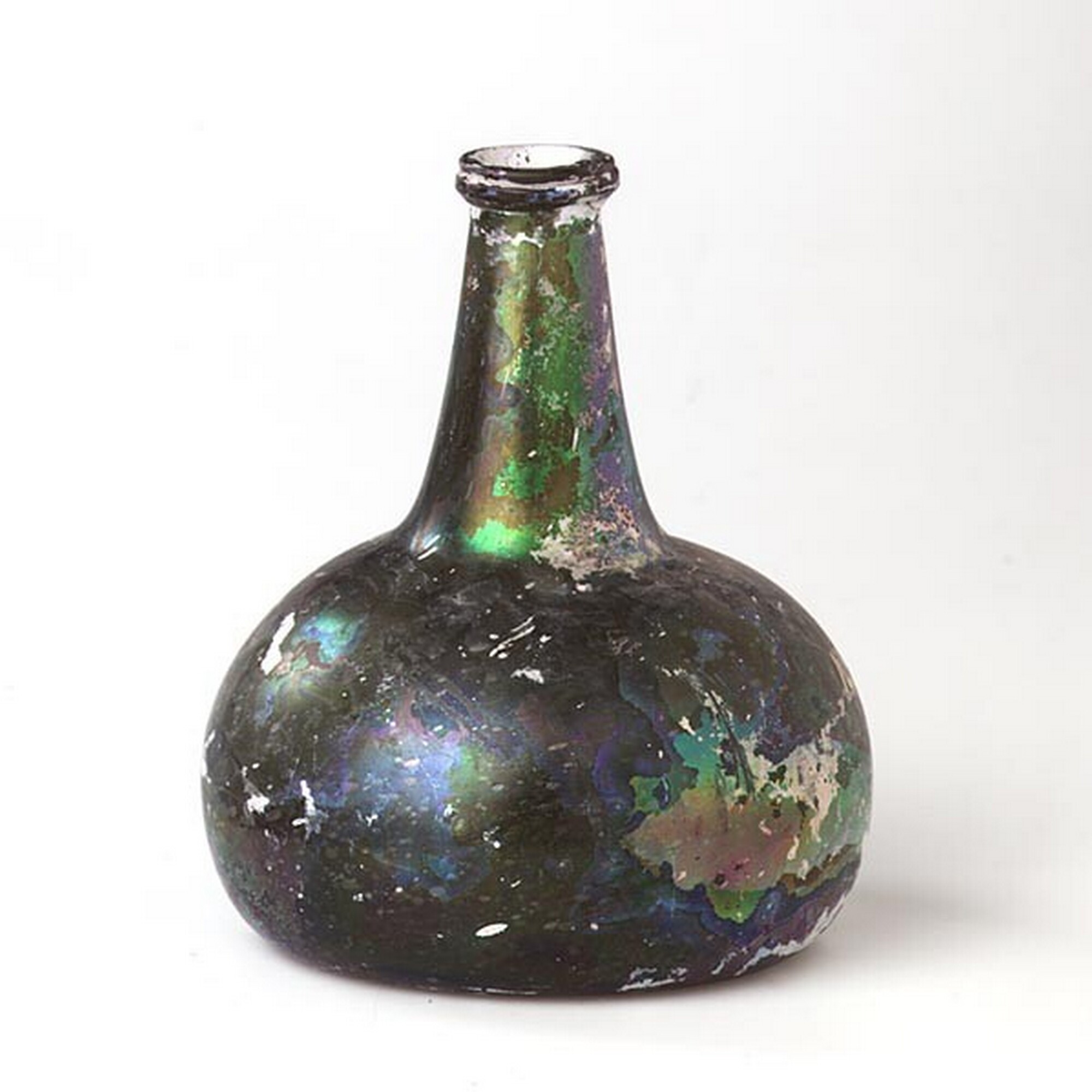 Wijnfles:hoge hals, opgebolde bodem