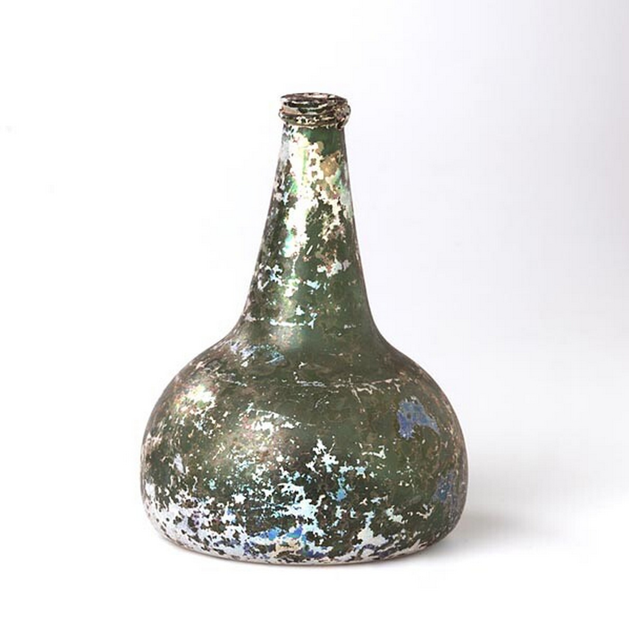 Wijnfles:hoge hals, opgebolde bodem