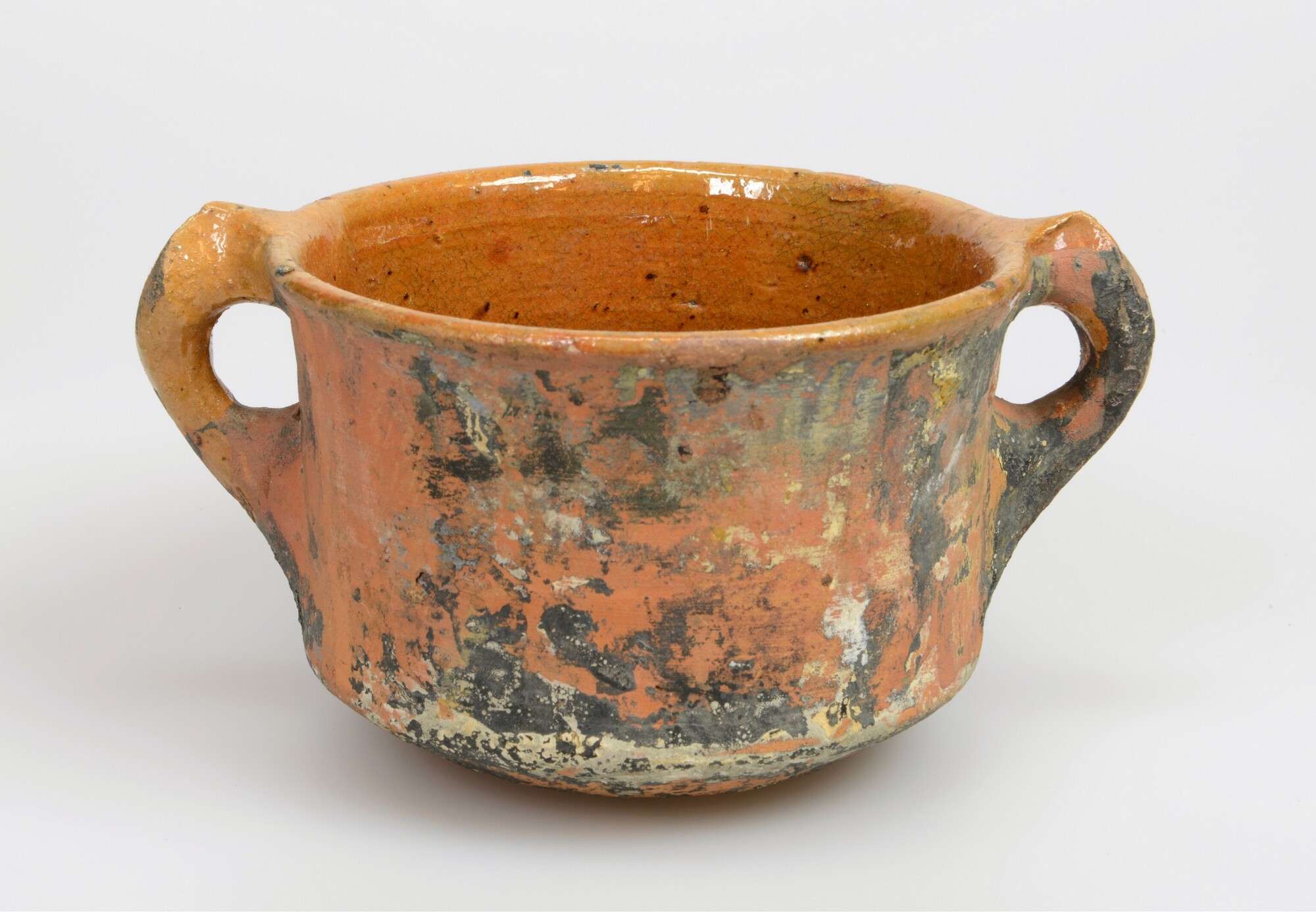 Kop, verfpot; r-kop-15; roodbakkend; Friese verfpot, verfresten op ongeglazuurde buitenzijde; compleet; Friesland