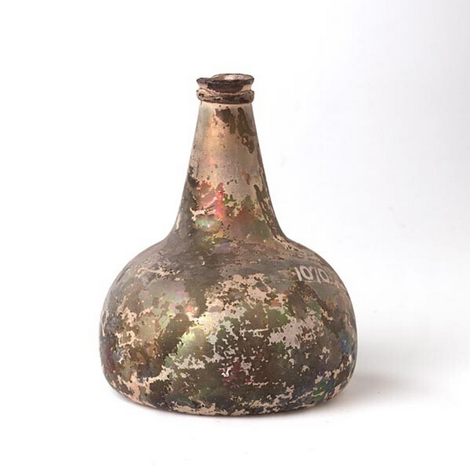 Wijnfles:hoge hals, opgebolde bodem