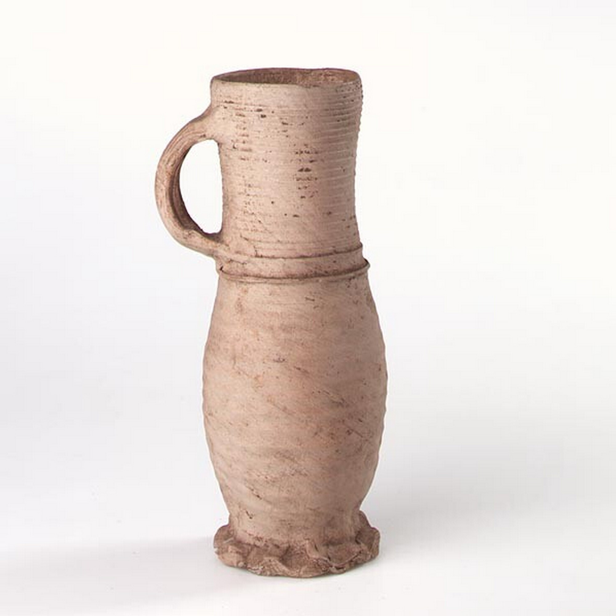 Drinkkan; s1-kan-23; steengoed zonder glazuur; overgangstype s1-kan-23/-15, oranje gevlamd; compleet; Siegburg
