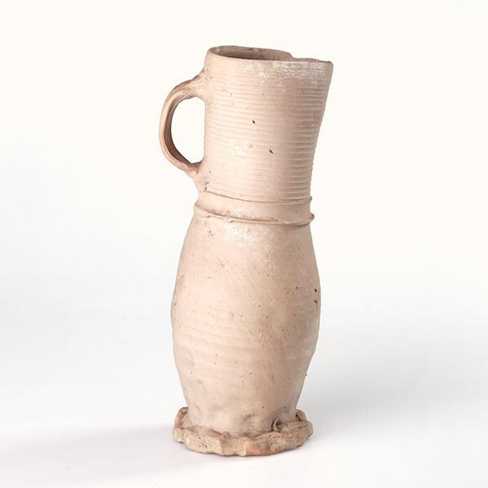 Drinkkan; s1-kan-15; steengoed zonder glazuur; overgangstype s1-kan-23/-15, oranje gevlamd; compleet; Siegburg