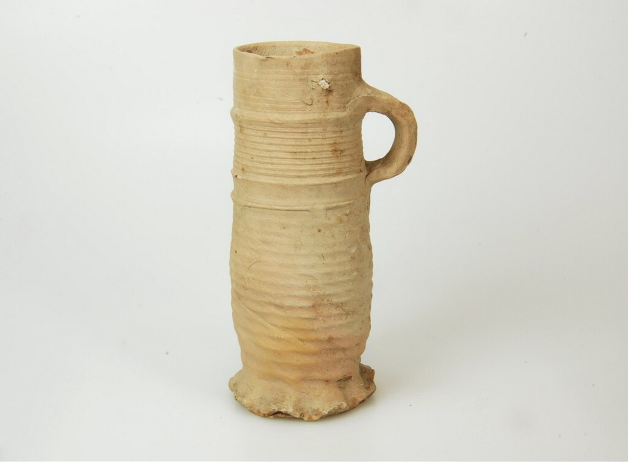 Drinkkan; s1-kan-999; steengoed zonder glazuur; s1-kan-23 met ribbel op hals; compleet; Siegburg