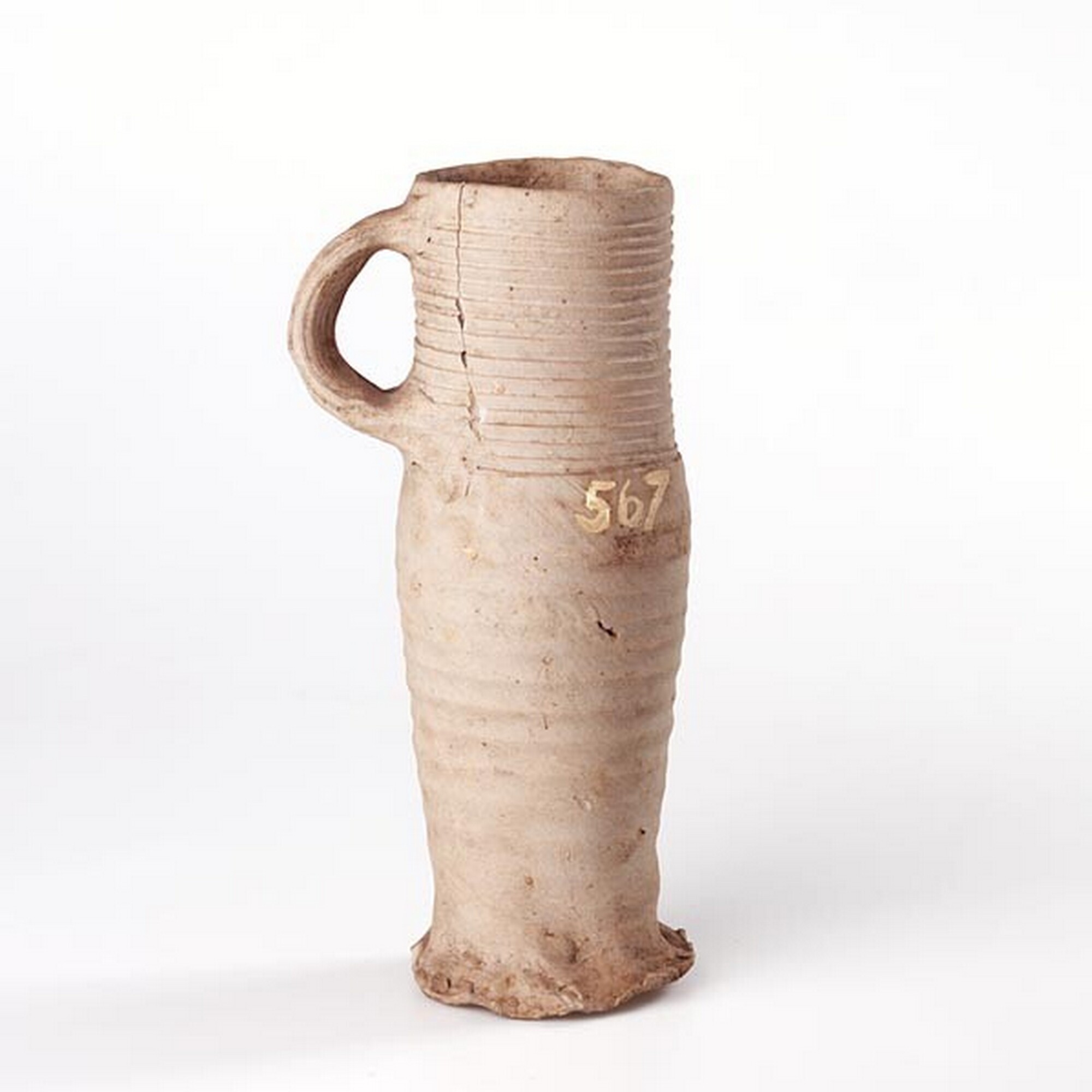 Drinkkan; s1-kan-8; steengoed zonder glazuur; slanke variant; compleet; Siegburg