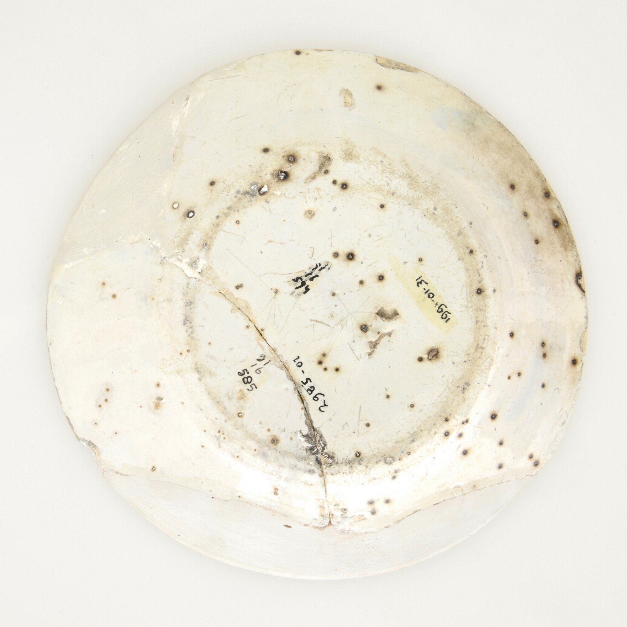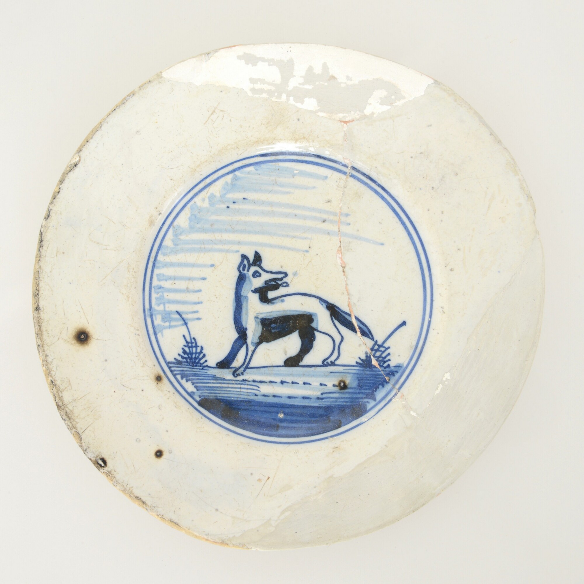 Bord; f-bor-; faience; tinglazuur; blauw, standvlak; spiegel: vos in landschapje; AWP-code: 1991-01-31
