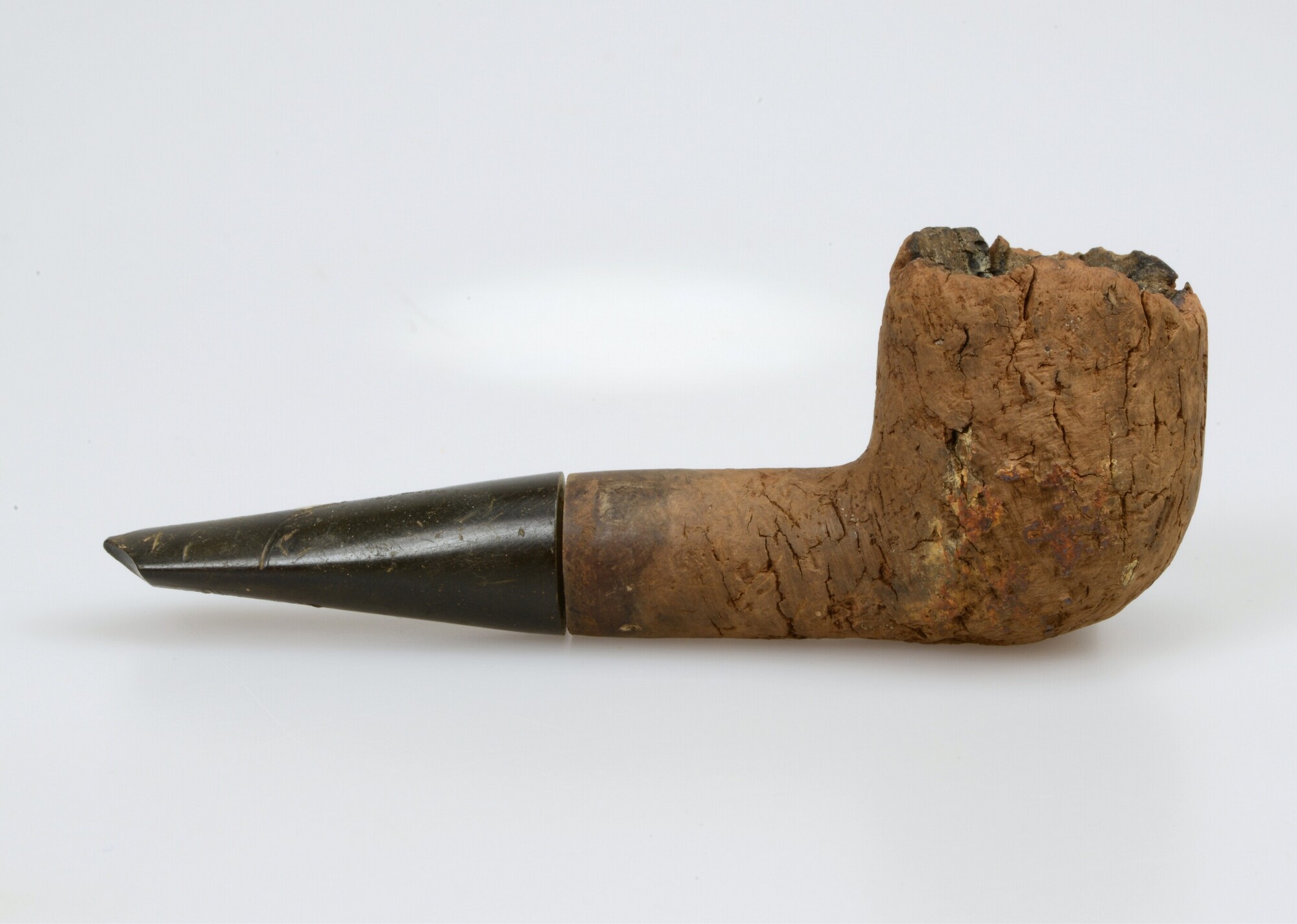 Tabakspijp; wortelhouten rookpijp, zgn Bruyère pijp, met bakelieten mondstuk