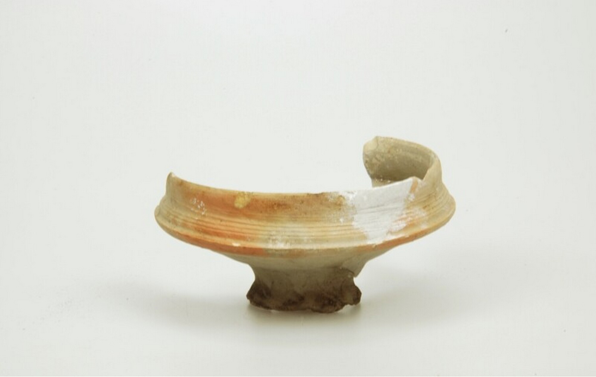 Drinkschaal; s1-dri-2; steengoed zonder glazuur; gevlamd; fragment, compleet profiel; herkomst: Siegburg, Rijnland
