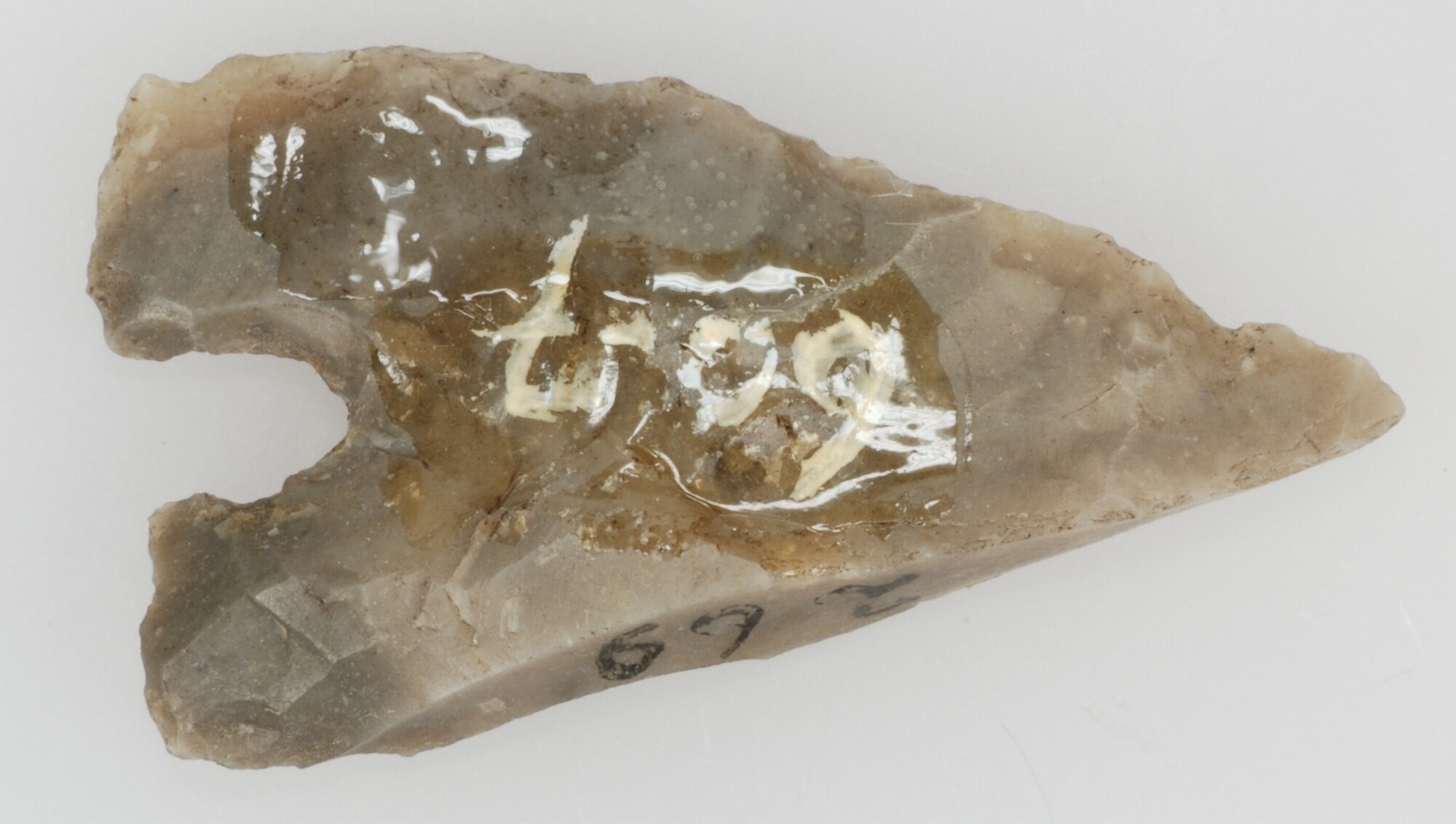 Pijlpunt; met weerhaak; vuursteen; vak A8, datum: 7-3-1960