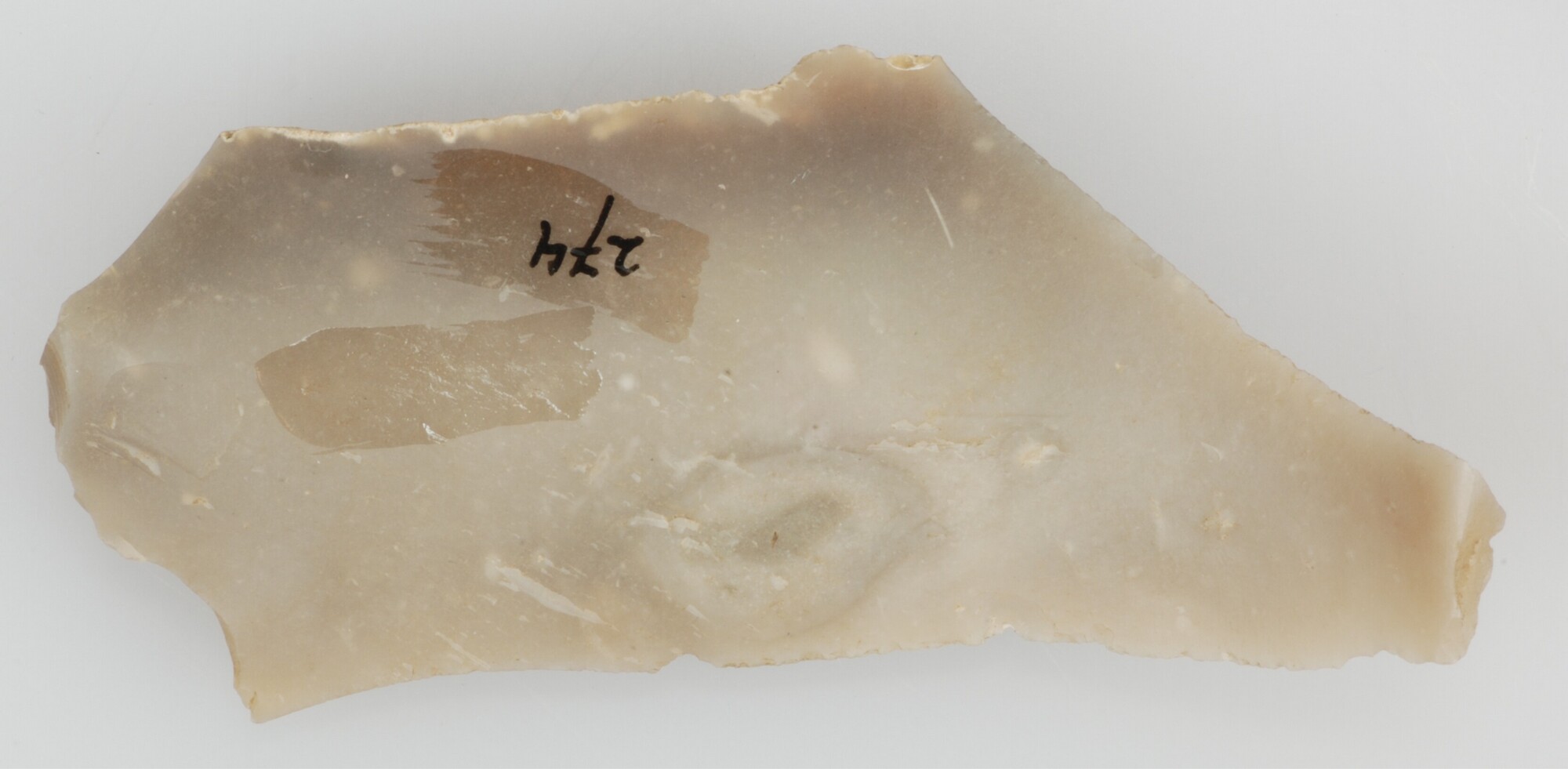 Afslag; aan één zijde gebruiksretouche. De afslag is als mes gebruikt; vuursteen;