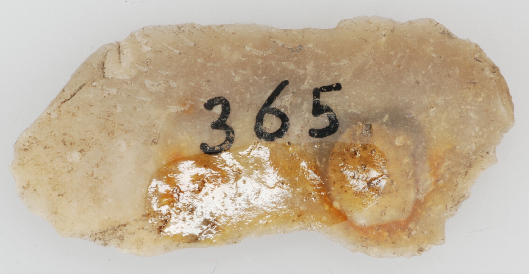 Afslag; vuursteen; vak f31, datum: 23-3-1960 opmerking: patina als gevolg van smeerolie (recent)