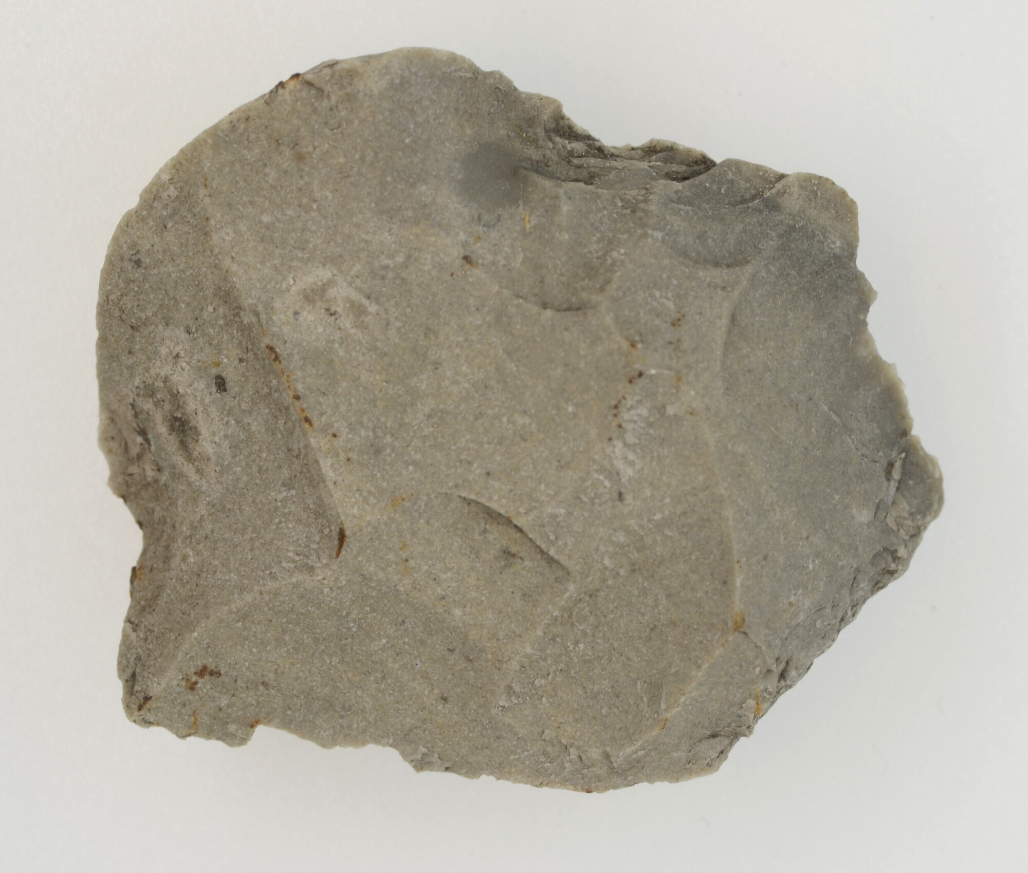 Splintered piece/ausgesplittertes Stück; vondstgegevens: 4:ZP1, zuidprofiel werkput 4
