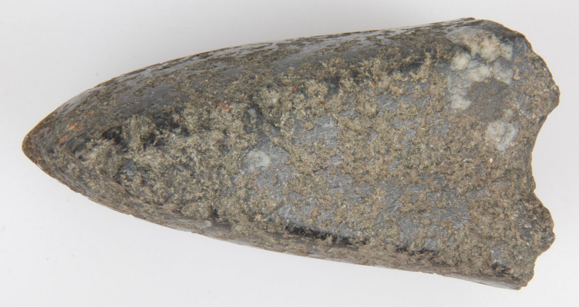 Hamerbijl; type C ?; steelaanzet afgebroken; vondstgegevens: gevonden door W. de Lange in perceel ca. 1 km ten Z.O. van opgraving; datum: 1975