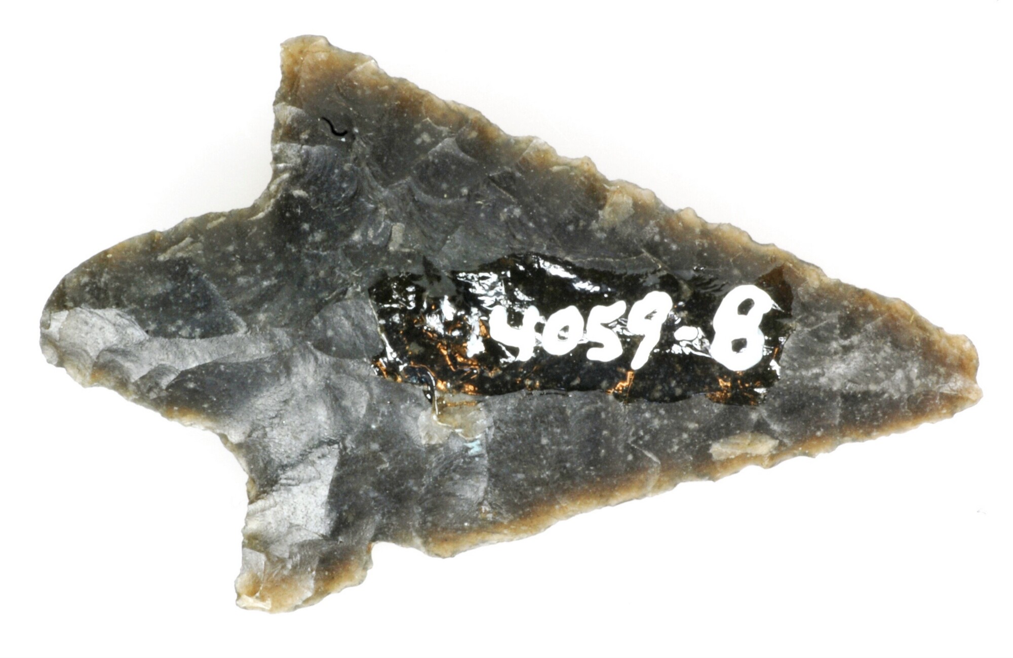 Pijlpunt; dennenboomvorm met weerhaken en schachtdoorn; gekartelde randen; vak: F8