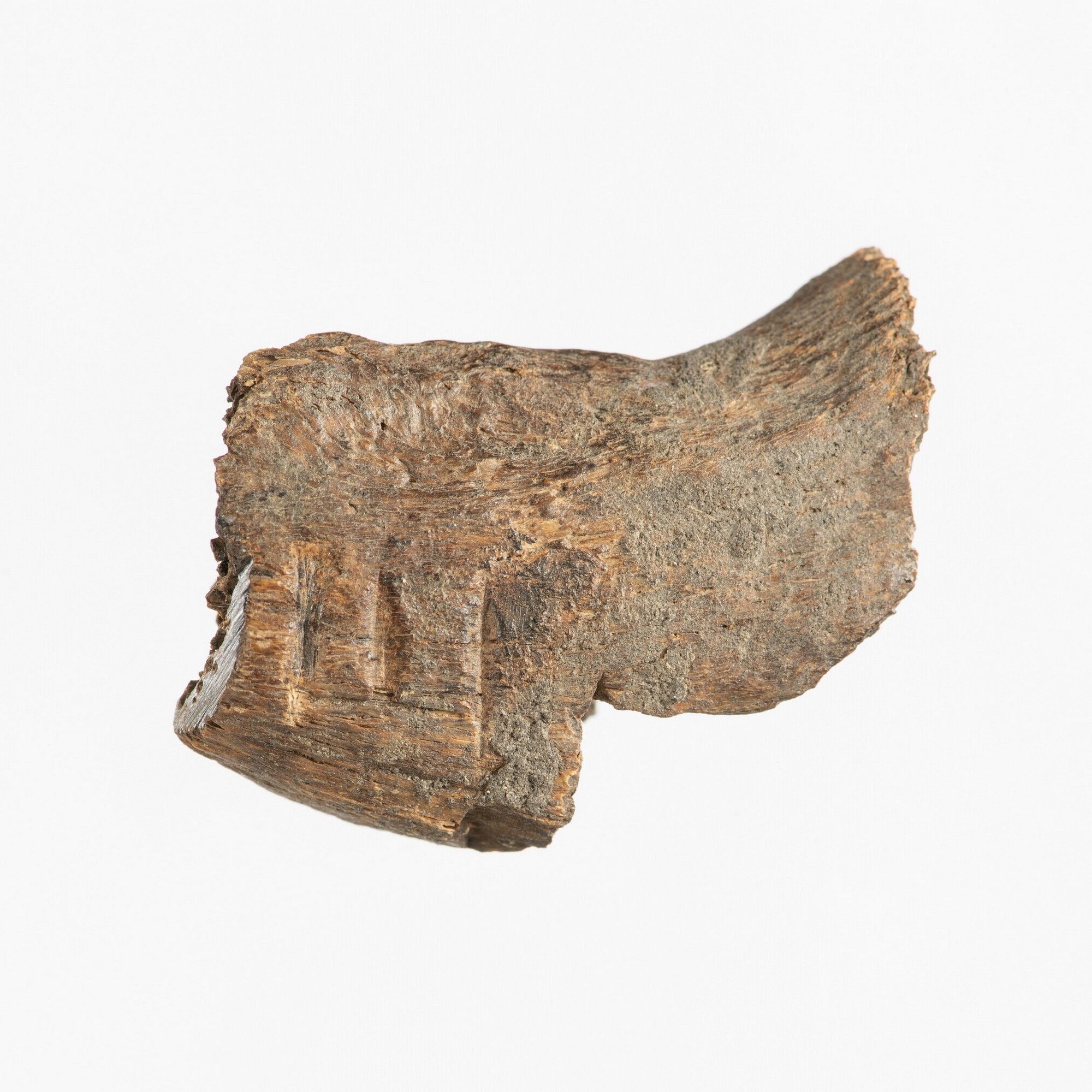 Fragment menselijk bot; clavicula, rechts; drie ingekerfde groeven
