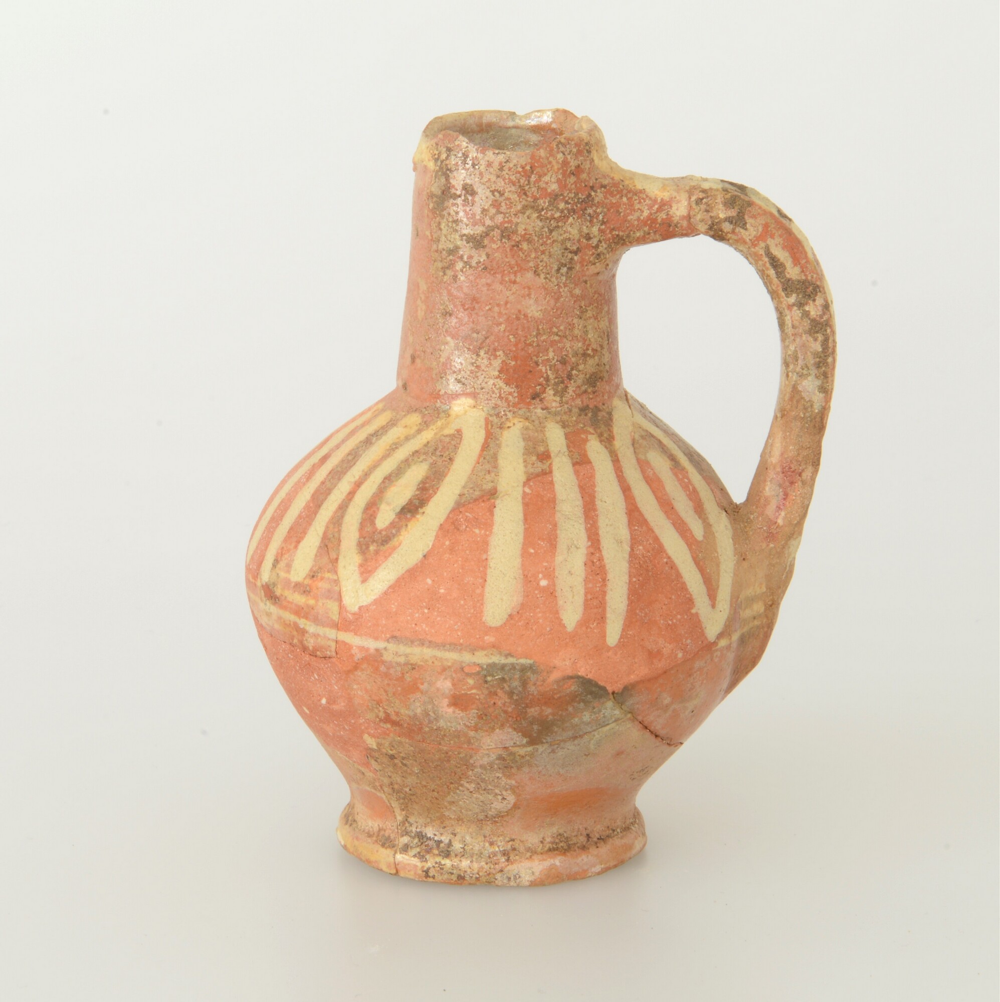 Kan; wa-kan-1; roodbakkend; loodglazuur; motieven in slibversiering; één lintoor; productieplaats: Enkhuizen