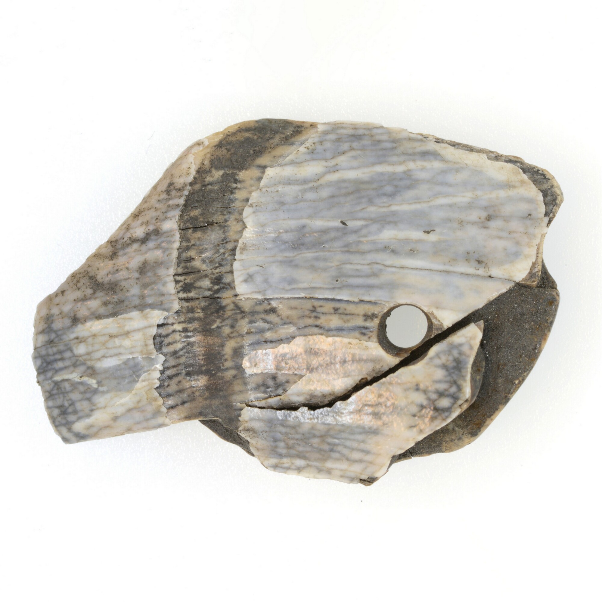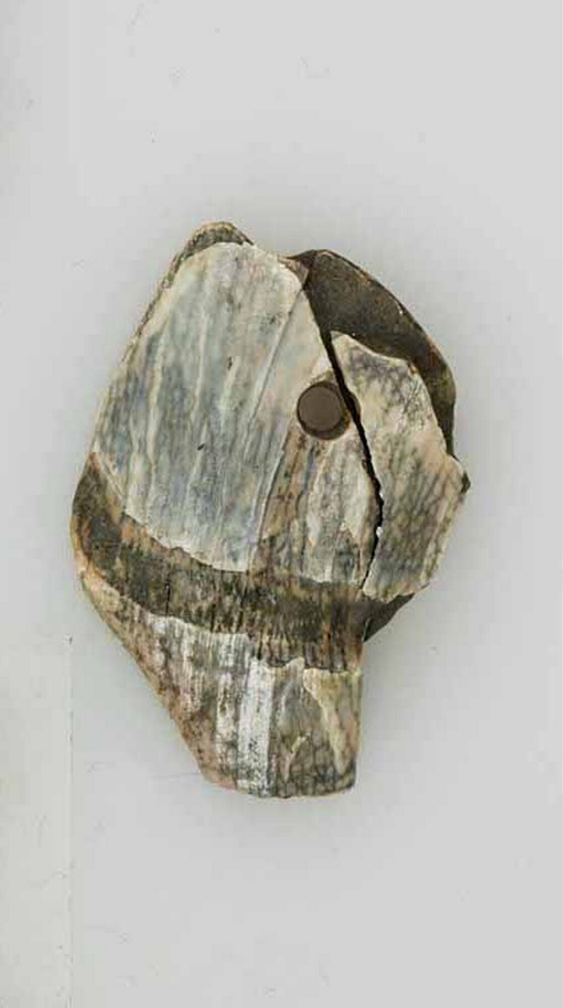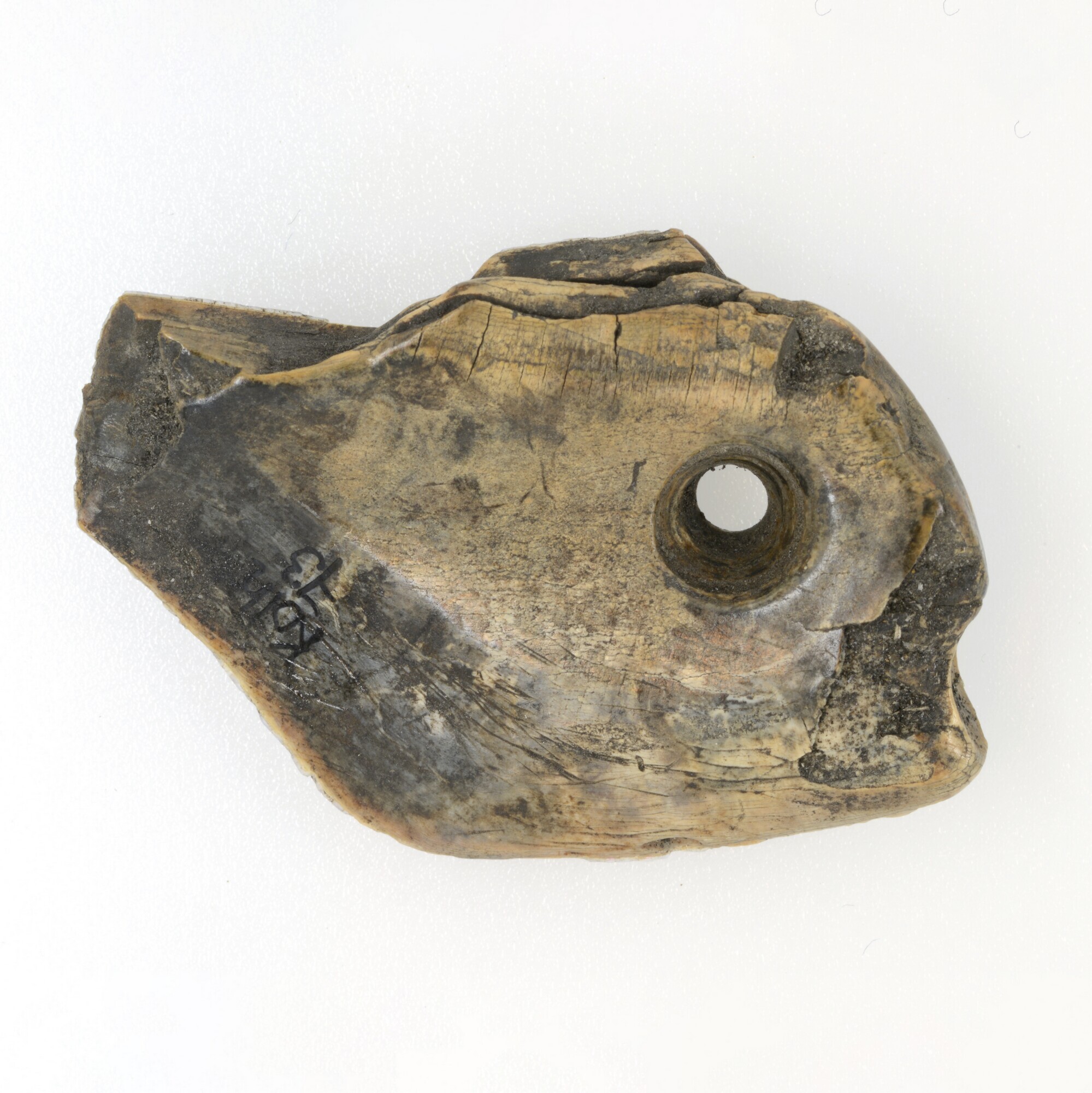 Hanger; vervaardigd uit een snijtand; vondstgegevens: KH79; feature 5, nr.73, concentratie