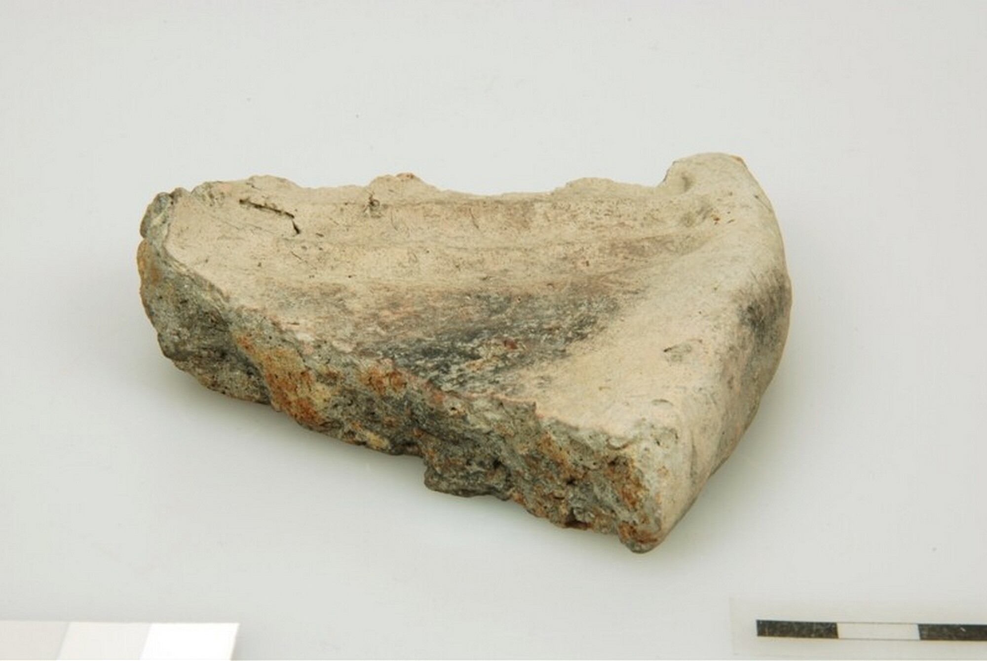 Schijf; inheems-Romeins aardewerk; fragment ronde plaat met centrale verhoging en opstaande rand