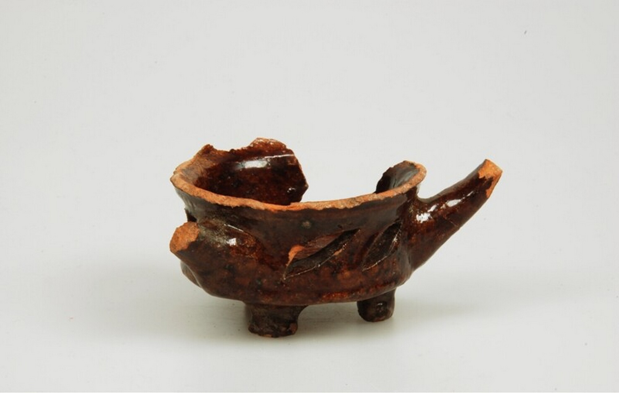 Komfoor; r-kmf-; roodbakkend; loodglazuur, mangaan; bruin; opstaande nokken; ventilatiegaten