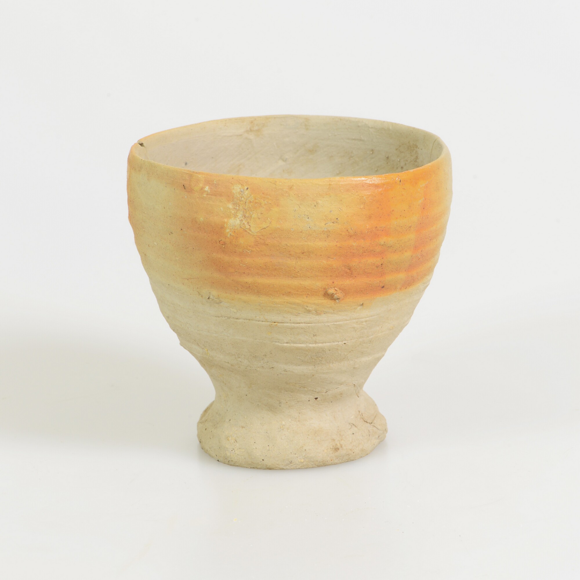 Beker; s1-bek-2; hoge afgeronde beker; gevlamd; geknepen standring; steengoed; productieplaats: Siegburg