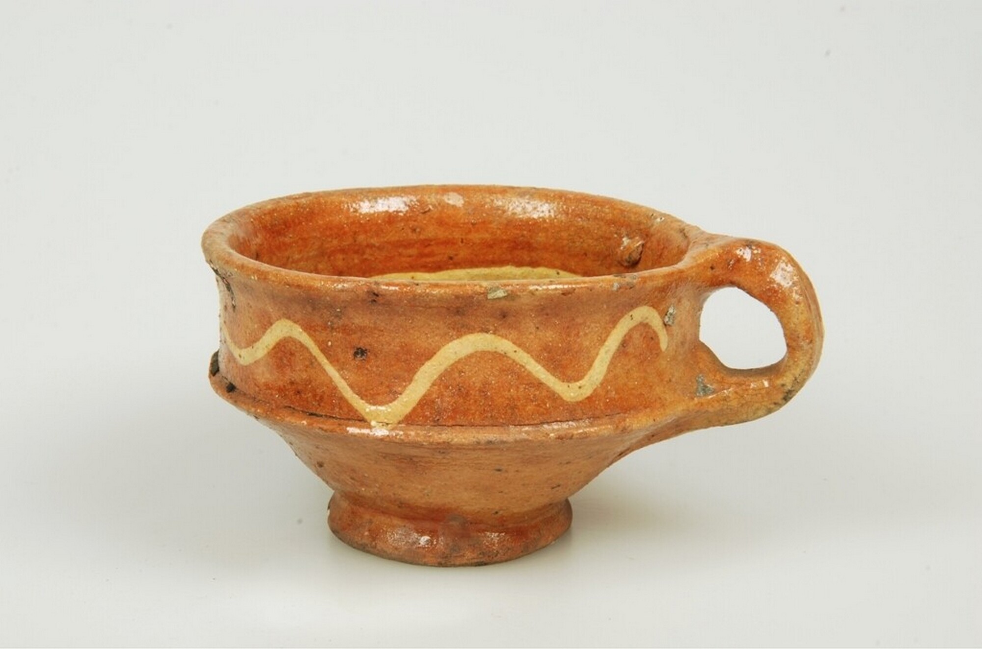 Kop, papkom; r-kop-4; roodbakkend; ringeloor op buitenzijde, inwendig geel; compleet; Friesland