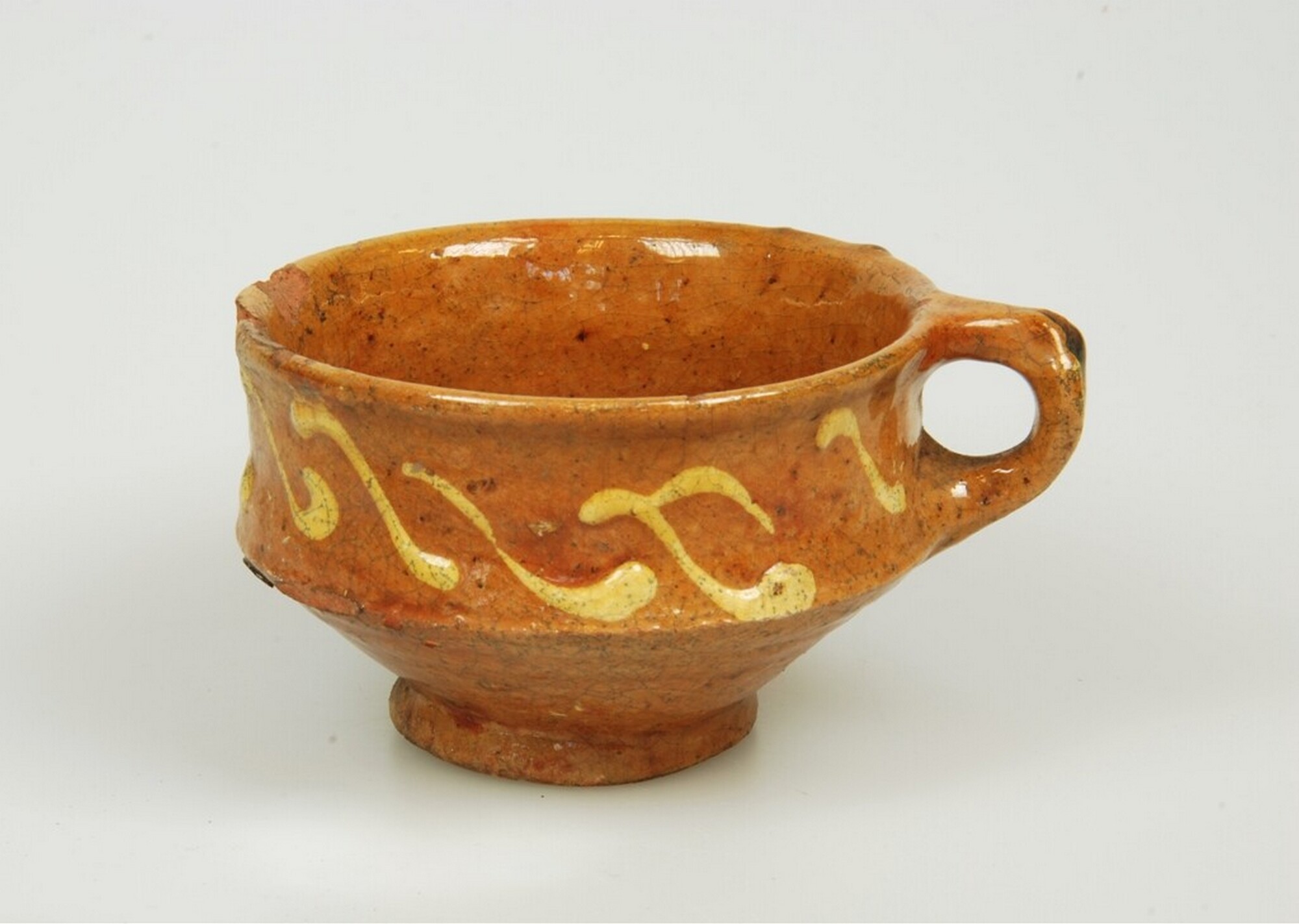Kop, papkom; r-kop-4; roodbakkend; ringeloor op buitenzijde, inwendig geel; compleet; Friesland