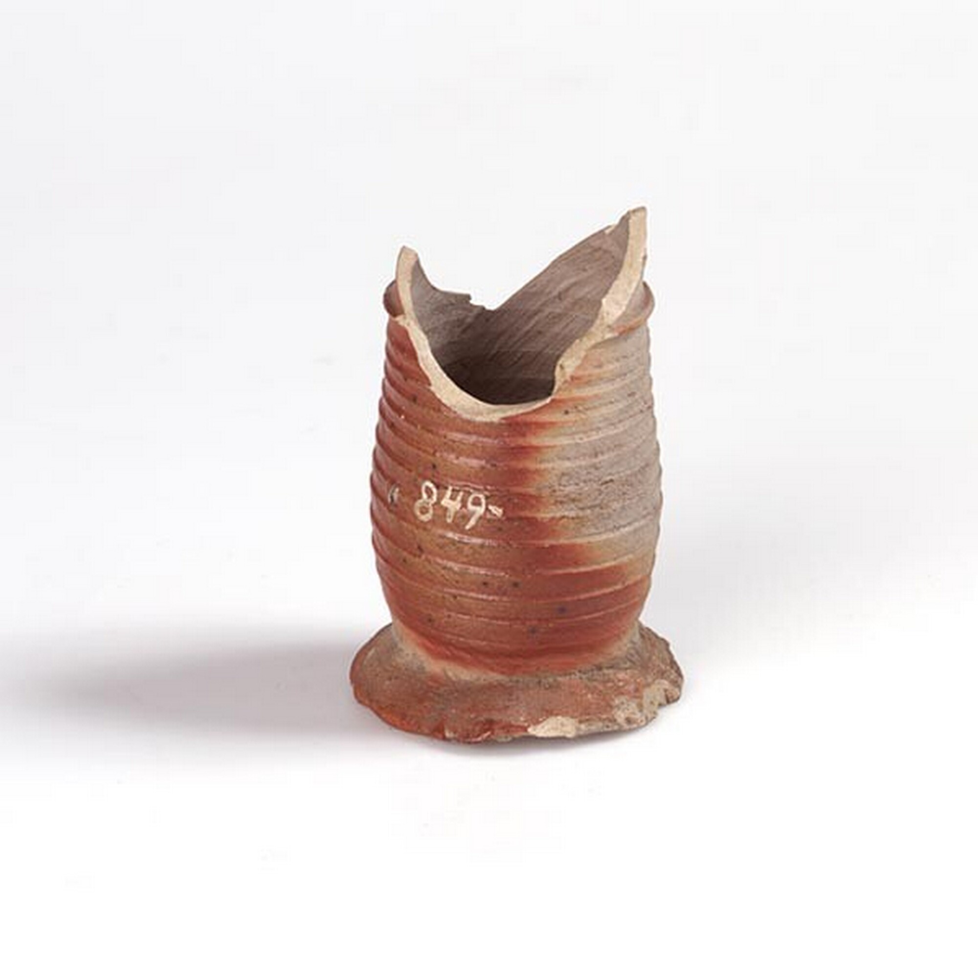 Trechterbeker; s1-tre-9; steengoed zonder glazuur; gevlamd; fragment, bovenzijde ontbreekt; Siegburg