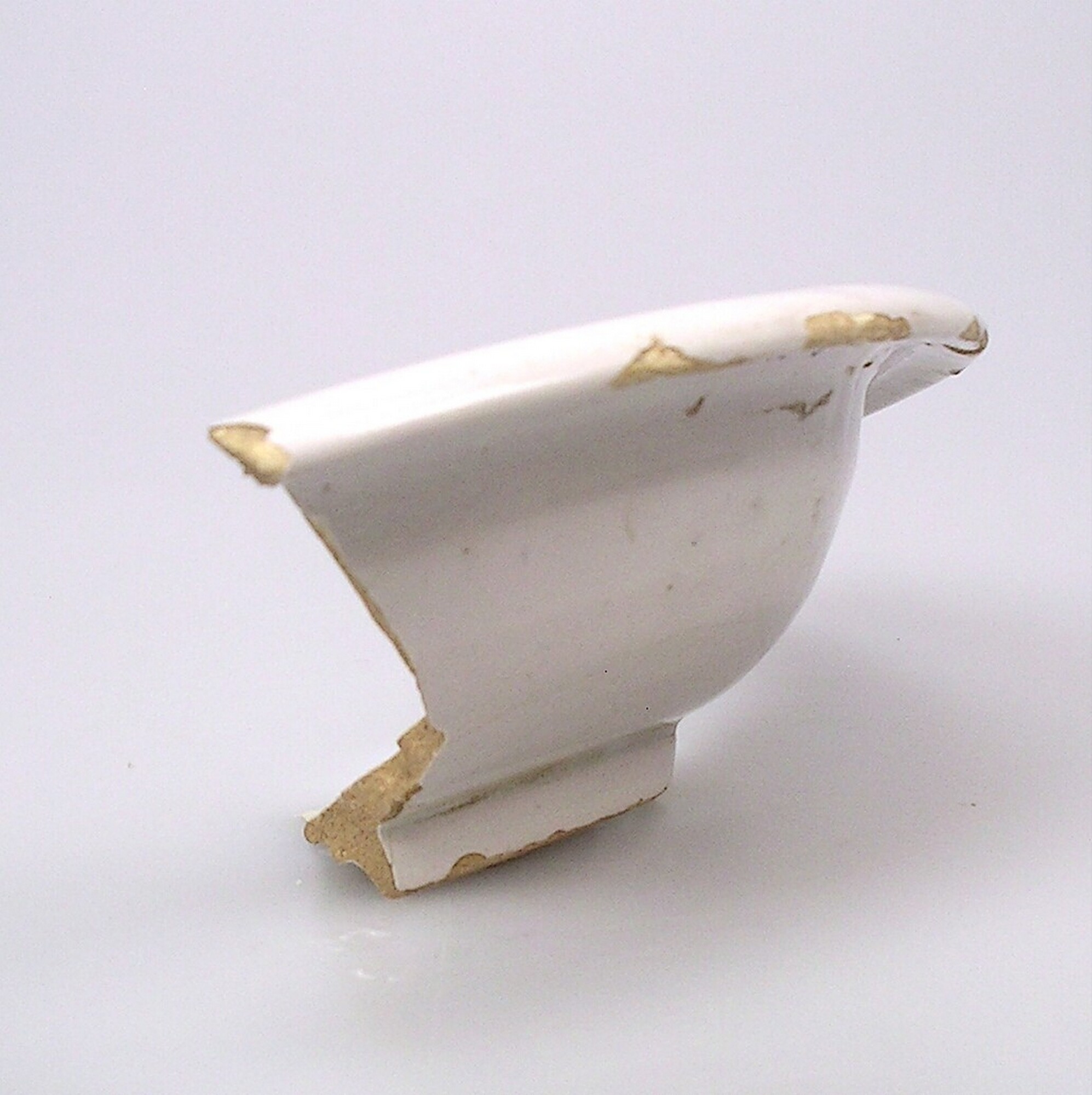 Bord; f-bor-11; diep afgerond bord zonder vlag met ver uitgebogen rand; Nederlands faience; voor- en achterzijde tinglazuur; wit; standring; herkomst: Delft