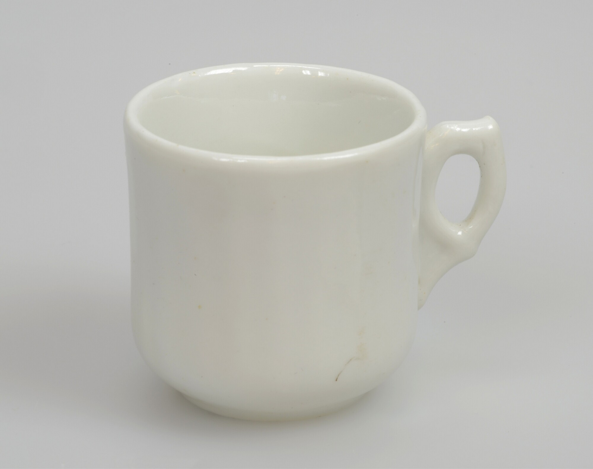 Kop; speelgoed / miniatuur koffiekopje; ep-kop-11; steilwandige kop met rechte rand, standring, verticaal vormoor; Europees porselein; veldspaatglazuur; blindmerk onderzijde: 1701; herkomst: Duitsland
