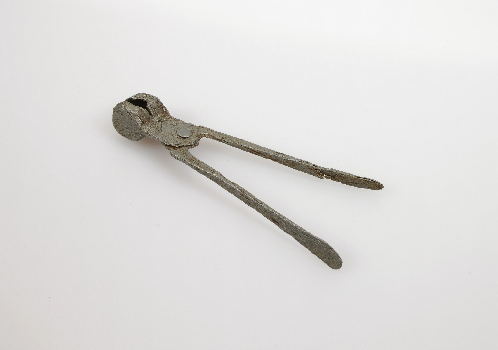 Kogeltang; mal voor het gieten van loden kogels; platte handvaten en 7 hoekige bak; vondstdatum: 27-08-1935