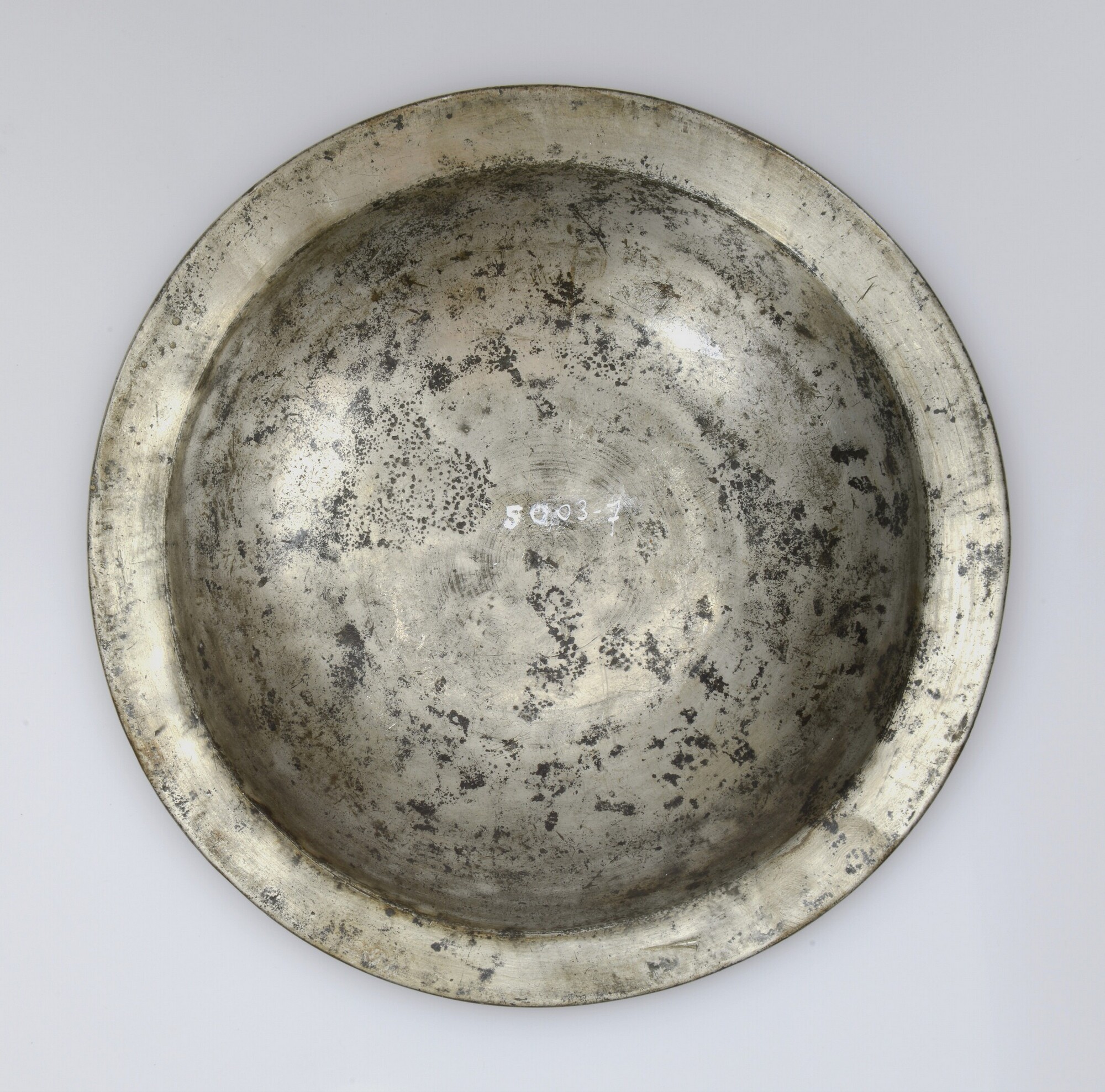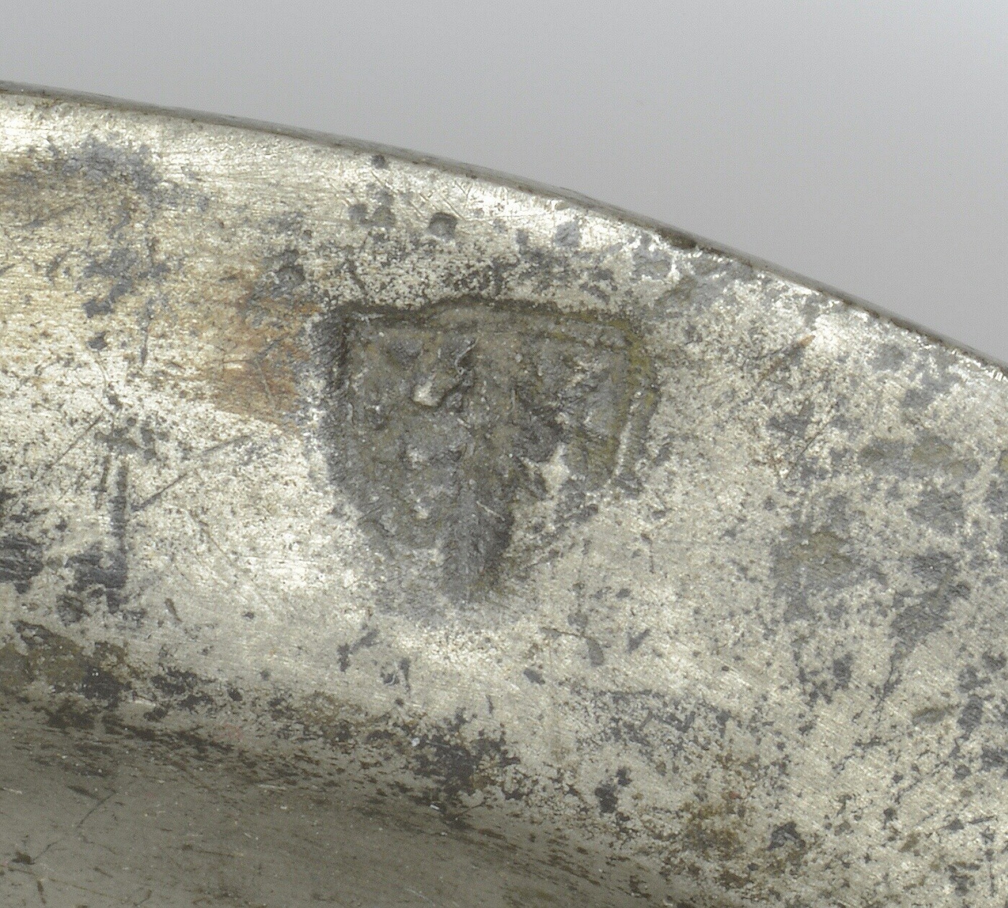 Bord / saucier; diep bord met smalle, afgeronde rand, standvlak; merk op rand; vondstdatum: 10-09-1934