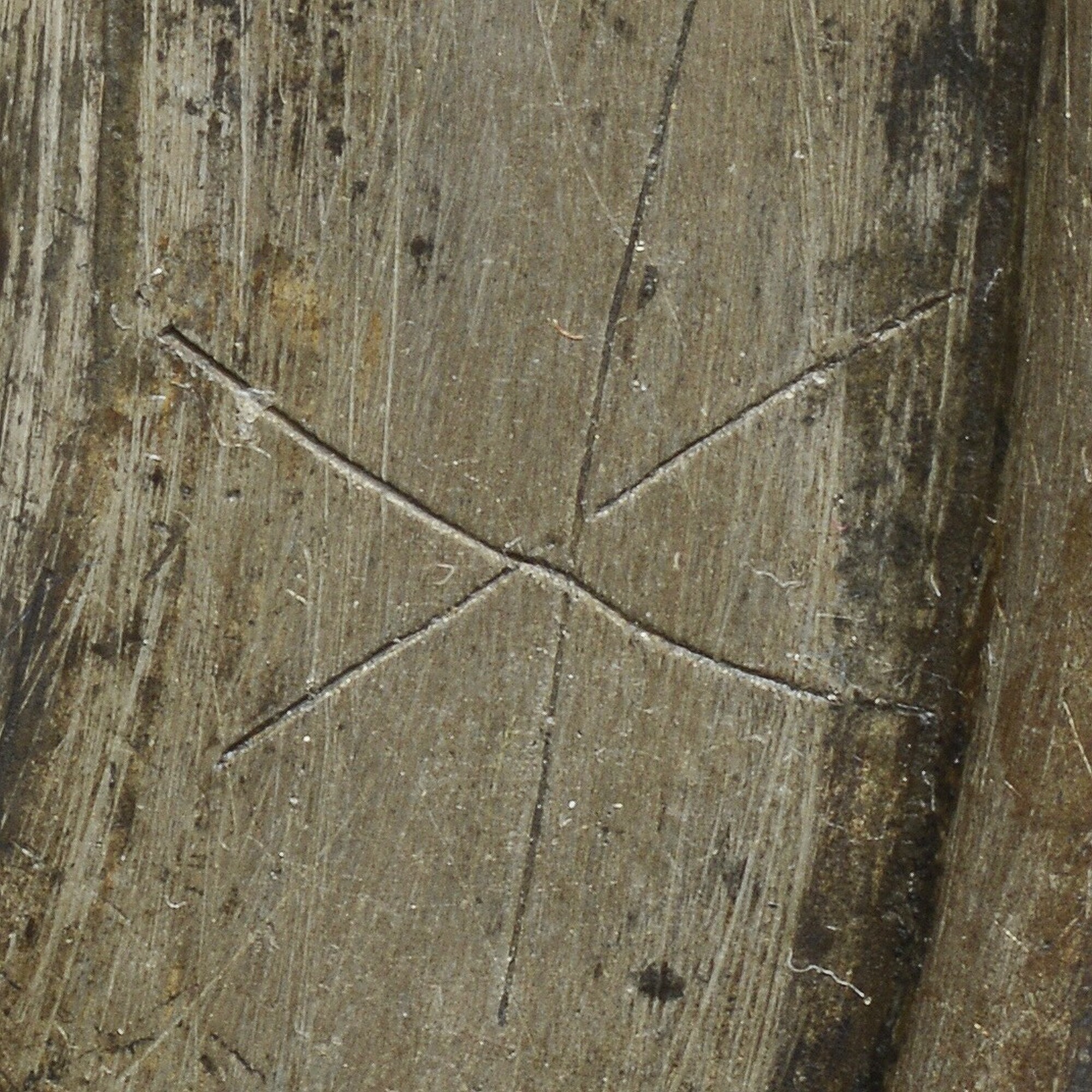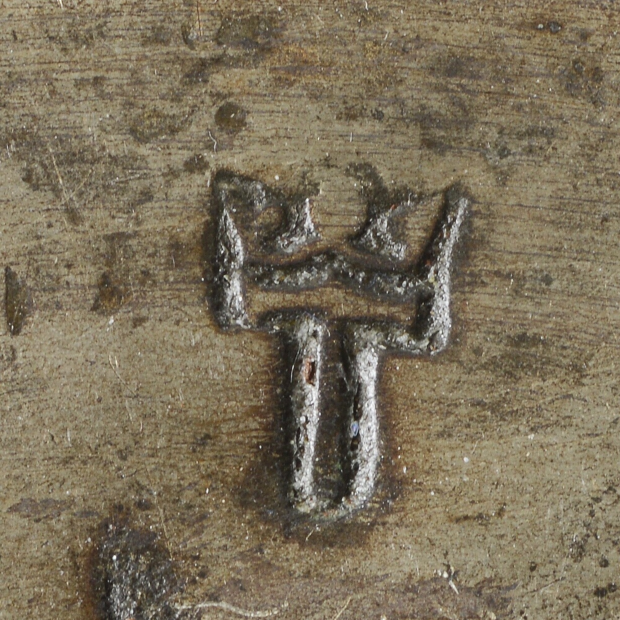 Bord; smalle rand en min of meer platte bodem; merkteken; vondstdatum: 23-08-1934