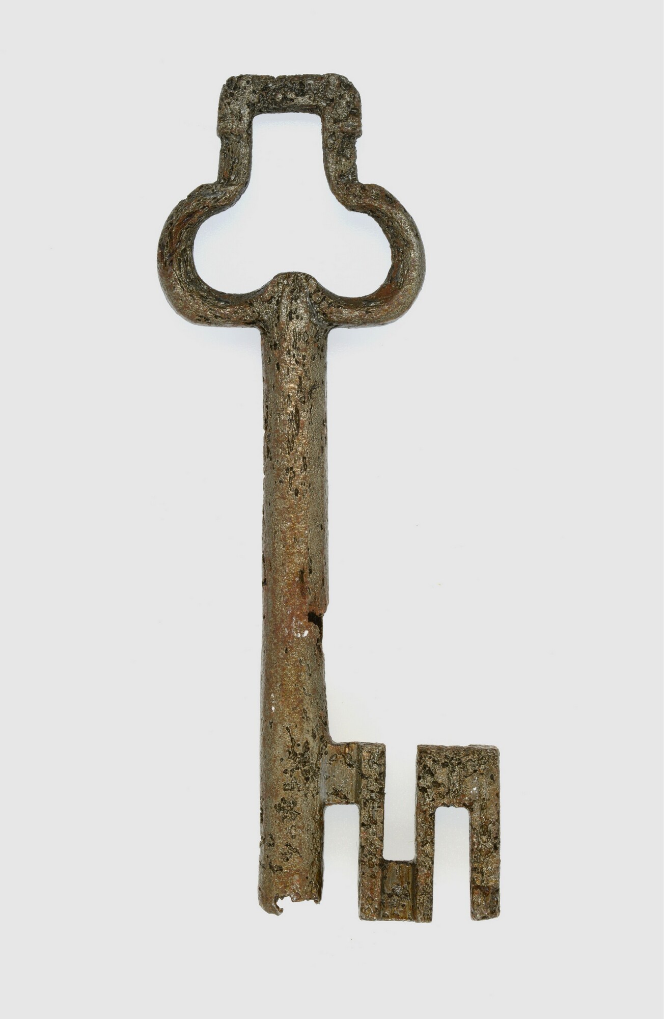Sleutel; massieve steel, klaverbladvormige greep; vondstdatum: 18-10-1935