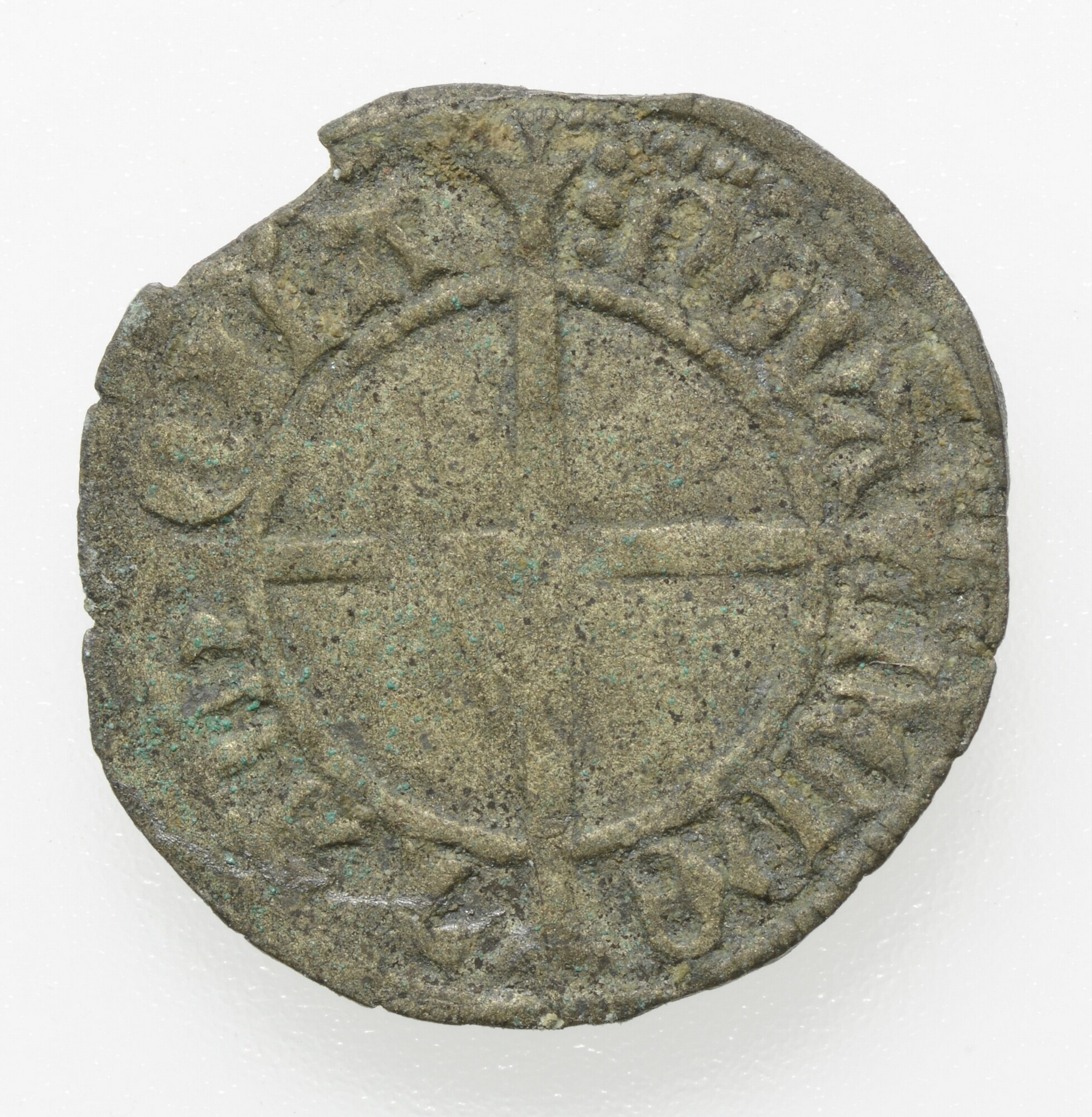 1/8 Groot; Graafschap Holland; Albrecht van Beieren (1398-1404); vz..: schuingeplaatst wapenschild van Beieren-Holland onder helm met kroon en dekkleed, omschrift binnen parelcirkels, omschrift: ALBERT:DVX:COM:HOLL; kz..: lang gevoet kruis, omschrift binnen parelcirkels, omschrift: :NOVA / MONE / TA:H / OLLA; muntplaats: Dordrecht; gewicht: 0.47 gram