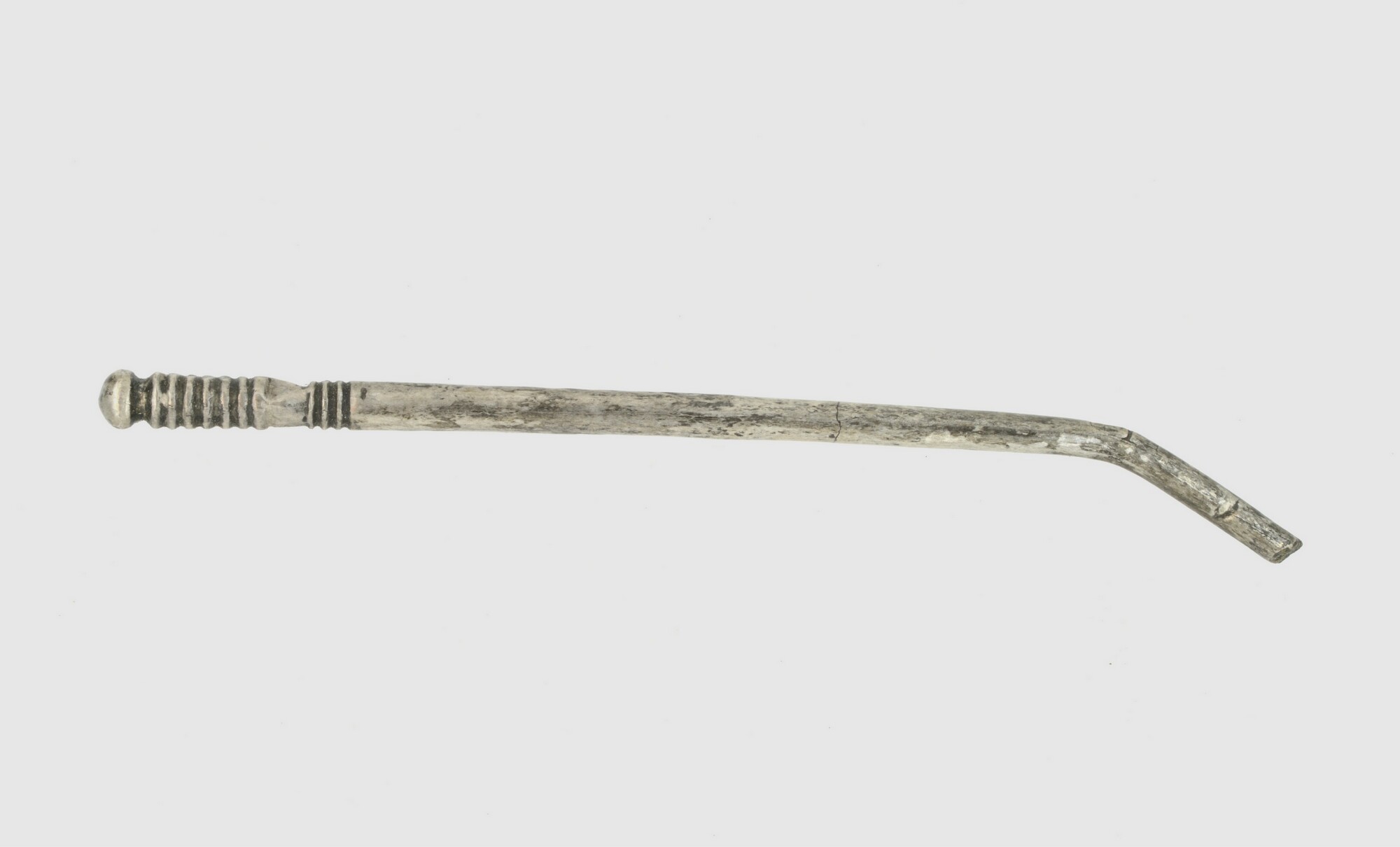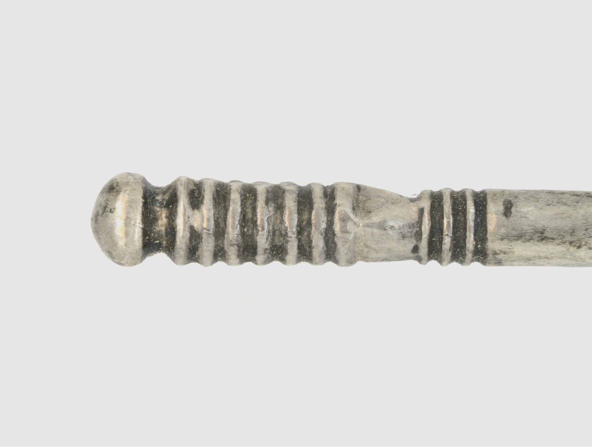 Haarnaald/siernaald; type Fécamp; geribd bovendeel en kleine kegelvormige kop
