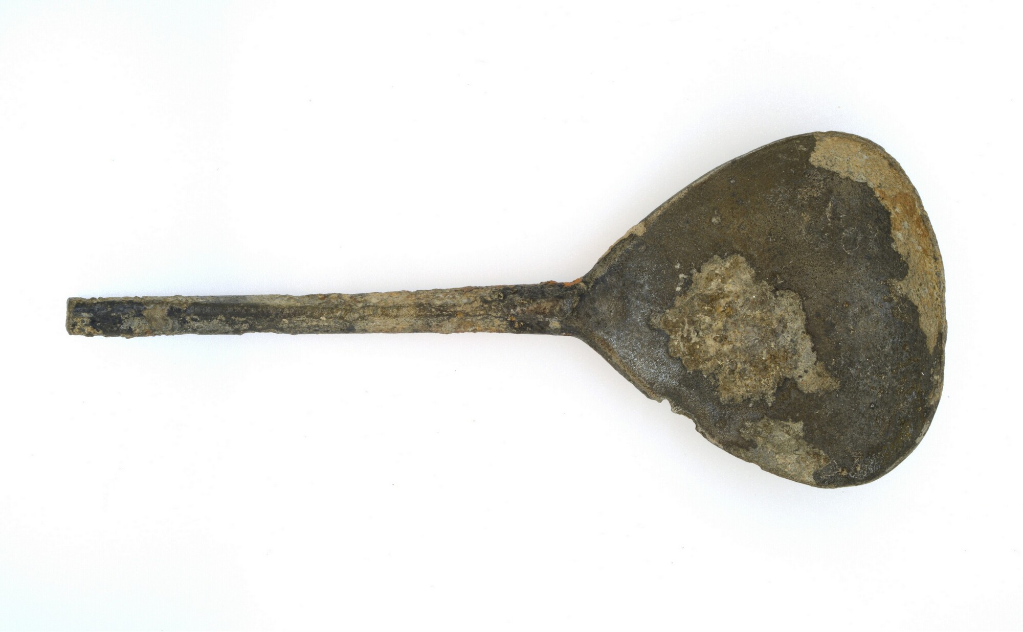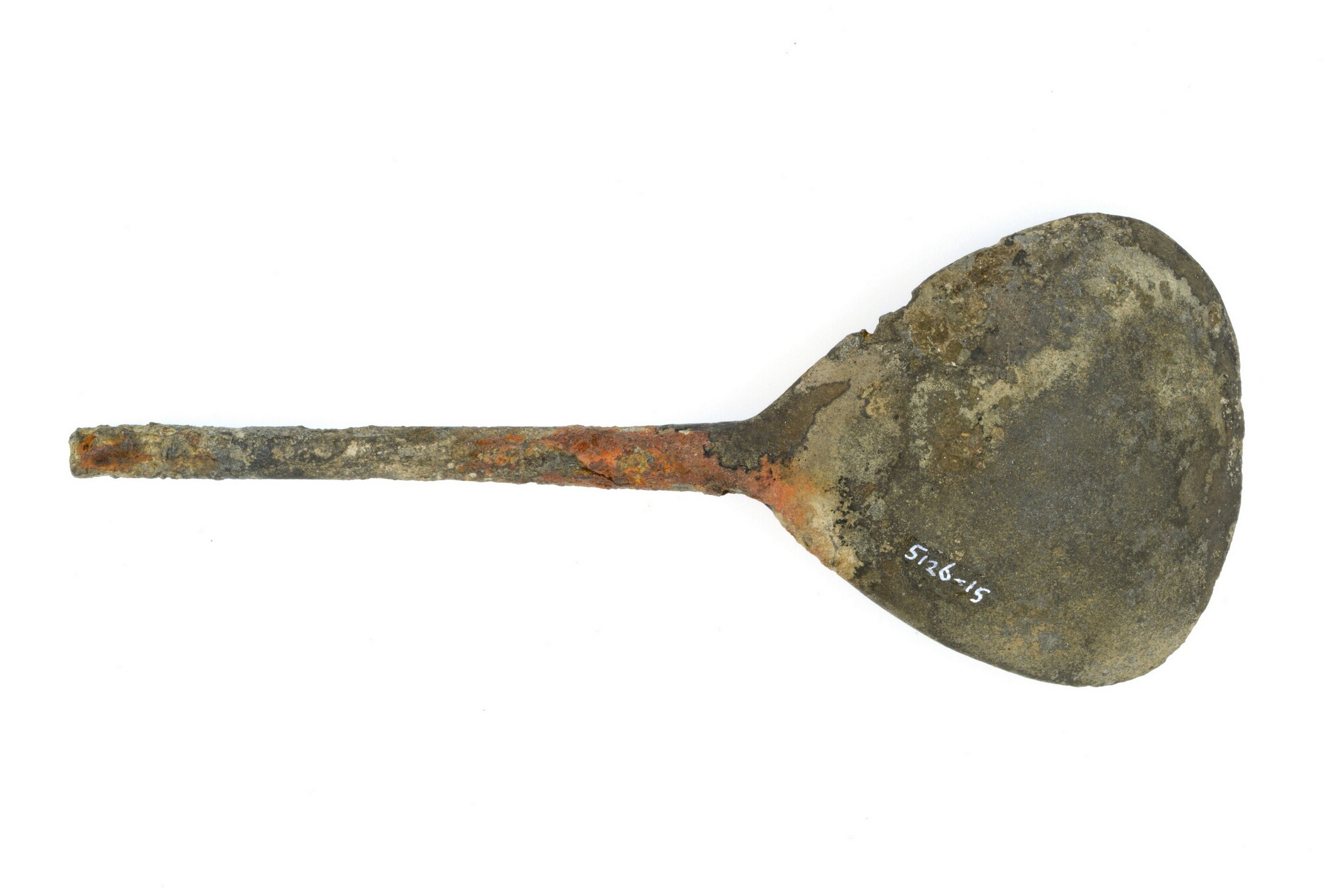Lepel; druppelvormige bak, ruitvormige steel (uiteinde afgebroken); overgang van steel naar bak is verstevigd met een ijzeren kern; sectienr.: 7, datum: 26-5-2005