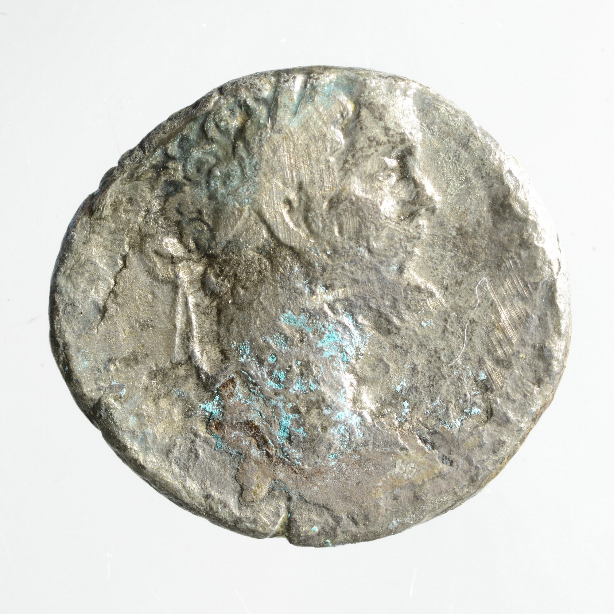 Denarius; type RIC 37; vz.: Septimius Severus kijkend naar rechts; kz.: zit PAX naar links; gewicht: 2.50 gram; muntplaats: Roma; vondstdatum: 13-9-1995; aanlegvondst