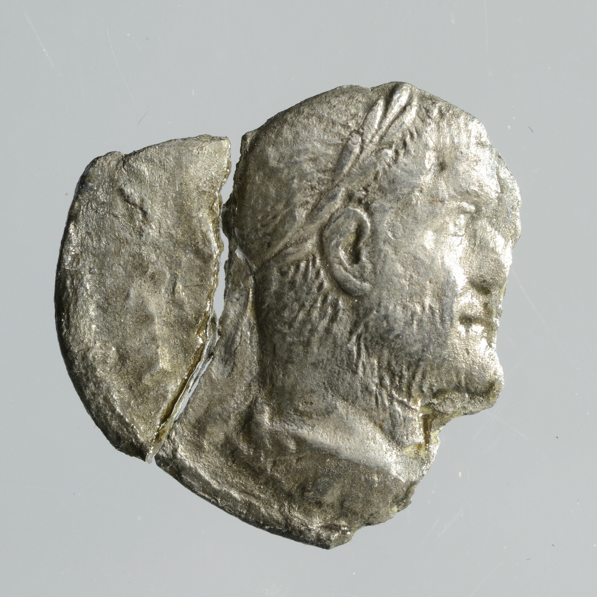 Denarius; type: RIC 18A; vz.: Maximinus I kijkend naar rechts; kz.: Fides militum; de munt is compleet verknipt en bestaat uit twee gefragmenteerde stukjes; gewicht: 0.67 gram; muntplaats: Roma; vondstdatum: 22-9-1995; stortvondst