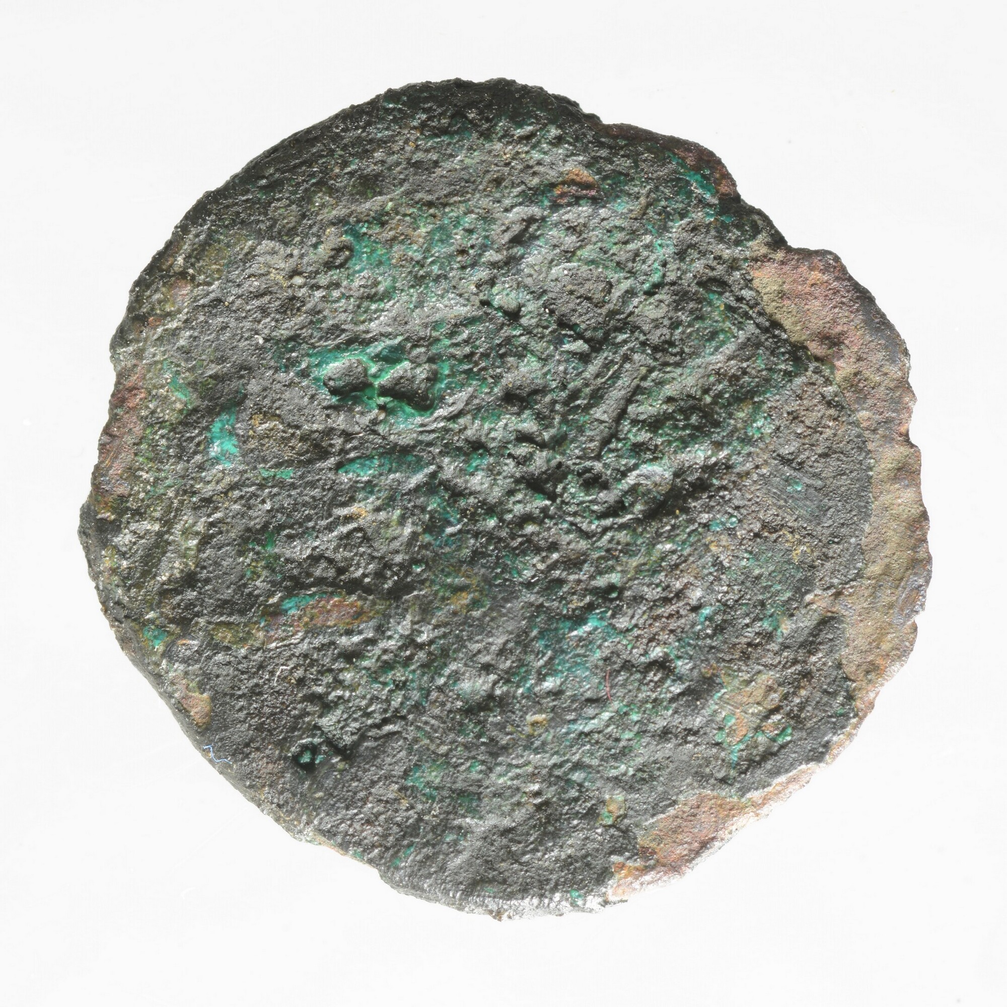 Antoninianus; vz.: versleten; kz.: Mars kijkend naar links?; gewicht: 2.02 gram; muntplaatst: Gallia; vondstdatum: 24-10-1996; vondstomstandigheden: aanleg put 6
