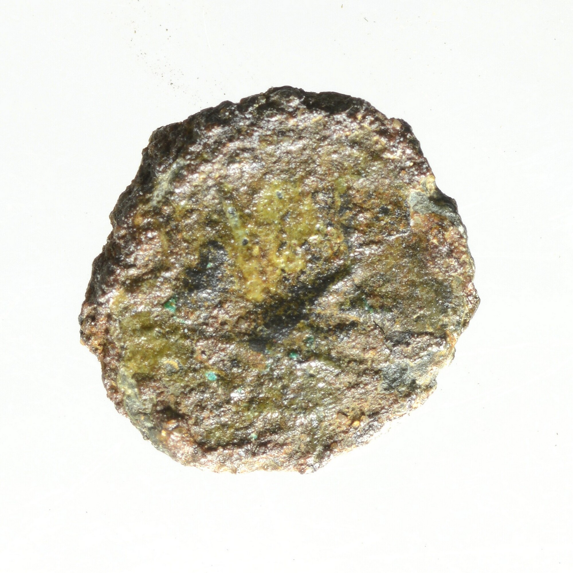 Antoninianus; barbaarse imitatie; vz.: kop kijkend naar rechts; kz.: personificatie kijkend naar links; gewicht: 0.35 gram; muntplaats: Gallia; vondstdatum: 4-3; detectorvondst