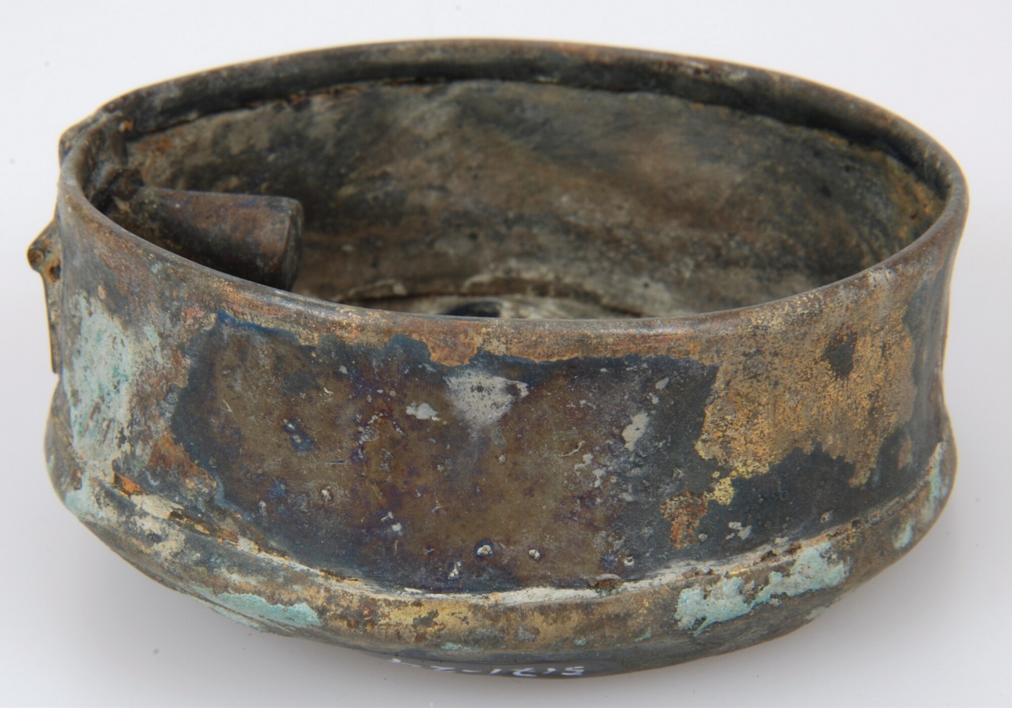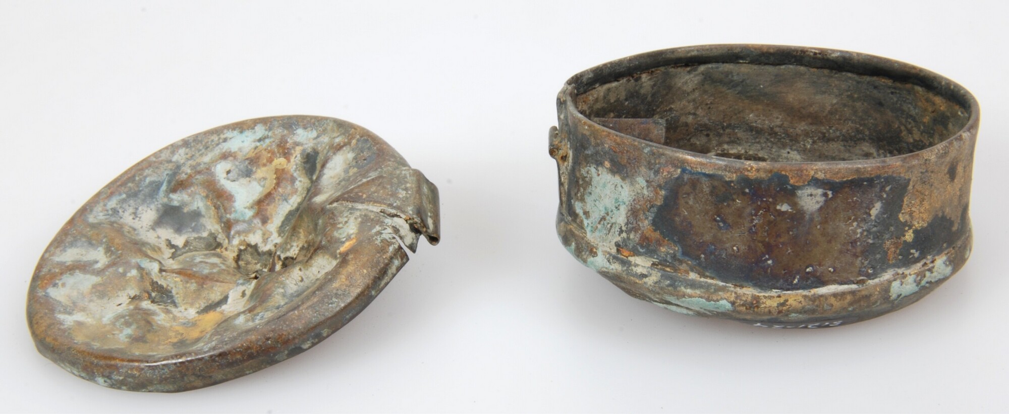 Tabaksdoos; driedelige (deksel, bodem en middenstuk) tabaksdoos met aan binnenzijde een stamper