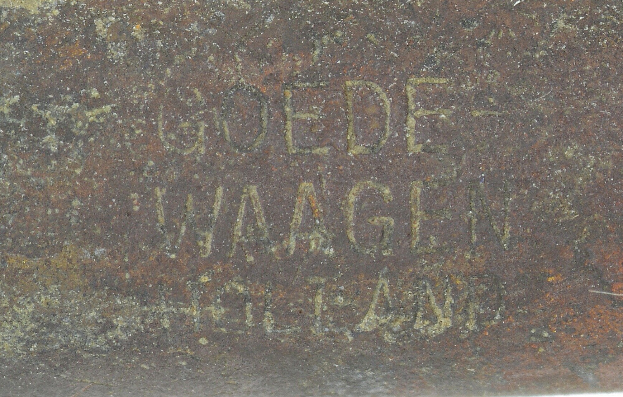 Sigarettenhouder; zwarte bakelieten pijp die overgaat in een daarop geplaatst koperen buisje met daarop de tekst 'GOEDEWAAGEN HOLLAND'
