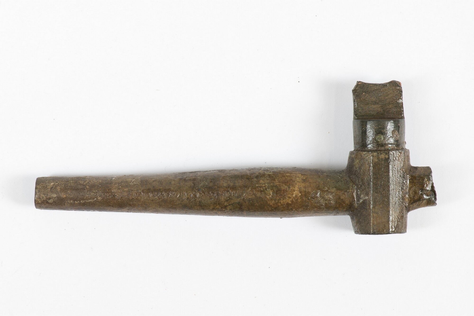 Tapkraan; handgreep en uiteinde afgebroken, merkteken